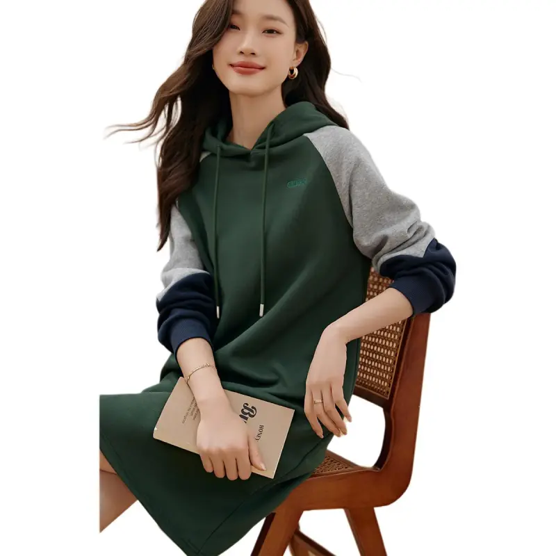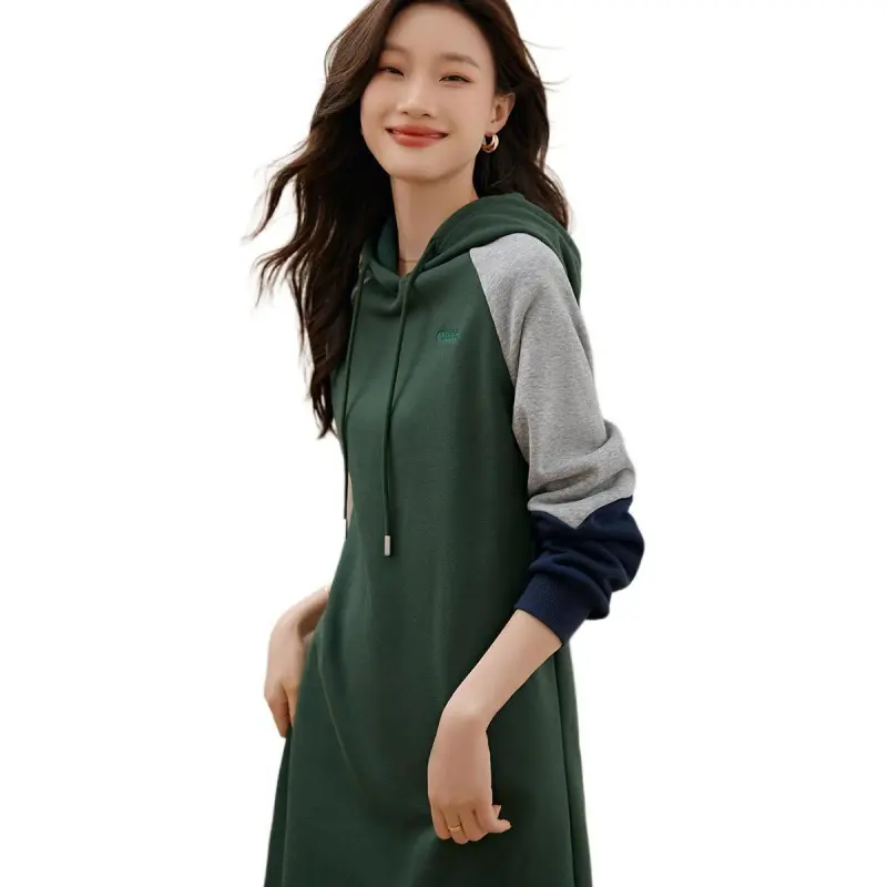 Mo Han Yi Mei Длинный рукав Платье Женское Зеленое