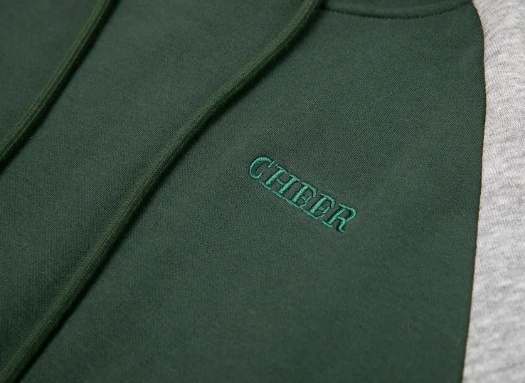 Зеленая ткань: 74% полиэстер, 26% хлопок Серая ткань оболочка: 58% хлопок, 42% полиэстер Серая ткань подкладочная ткань: 94% полиэстер, 6% эластан Синяя ткань: 74% полиэстер, 26% хлопок