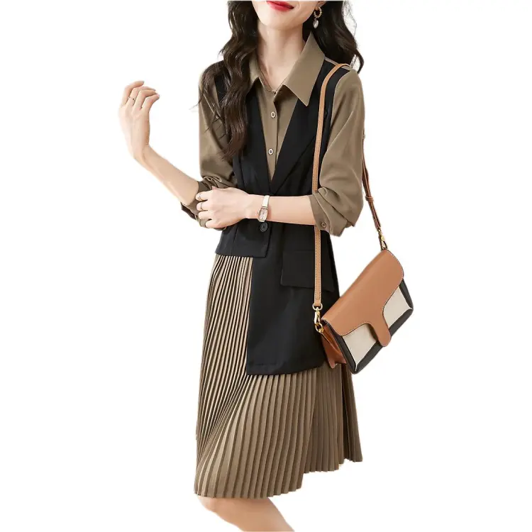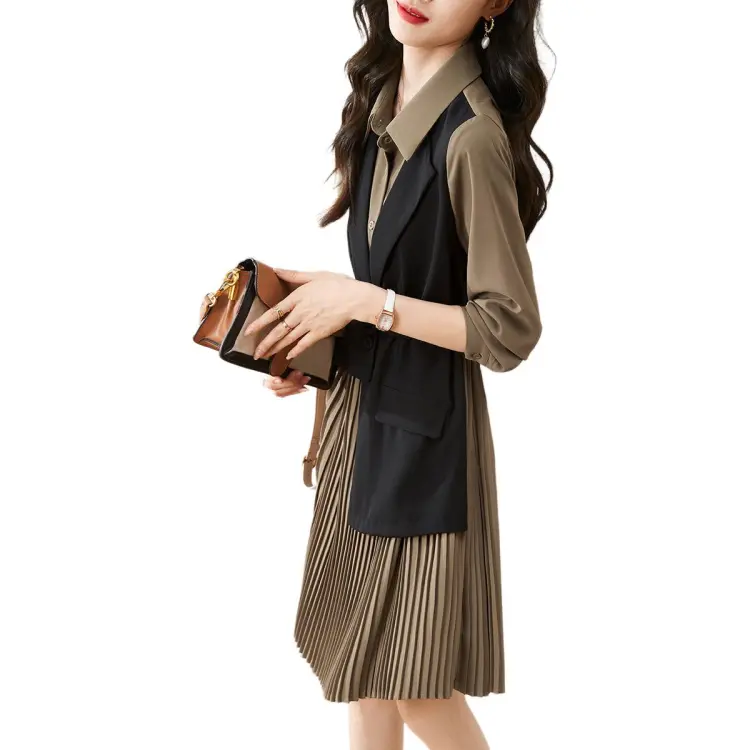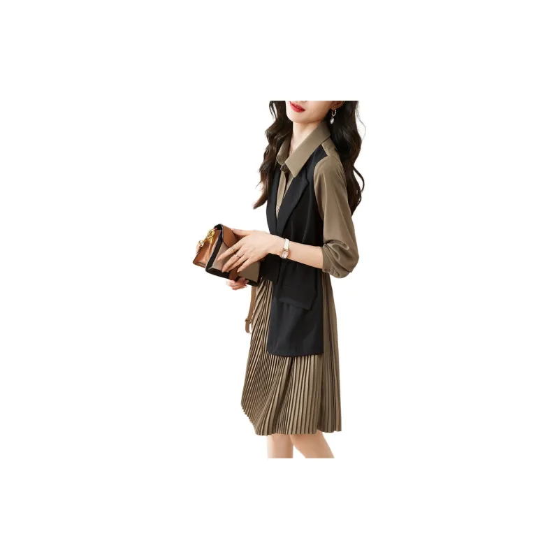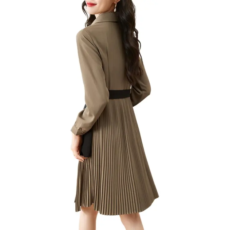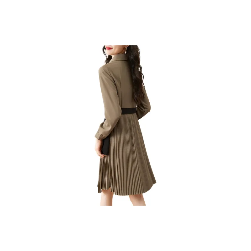 Mo Han Yi Mei Длинный рукав Платье Женское Хаки и Черное