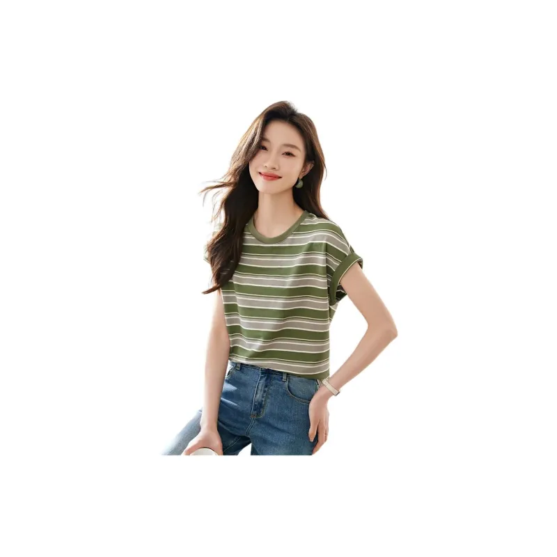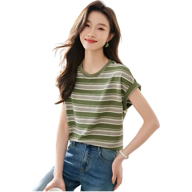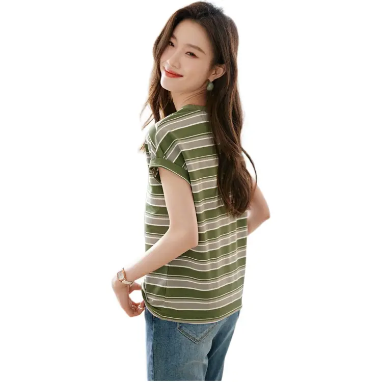 Mo Han Yi Mei Стандартная T-рубашка Женская Зеленые полосы