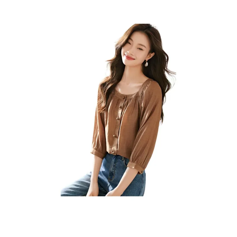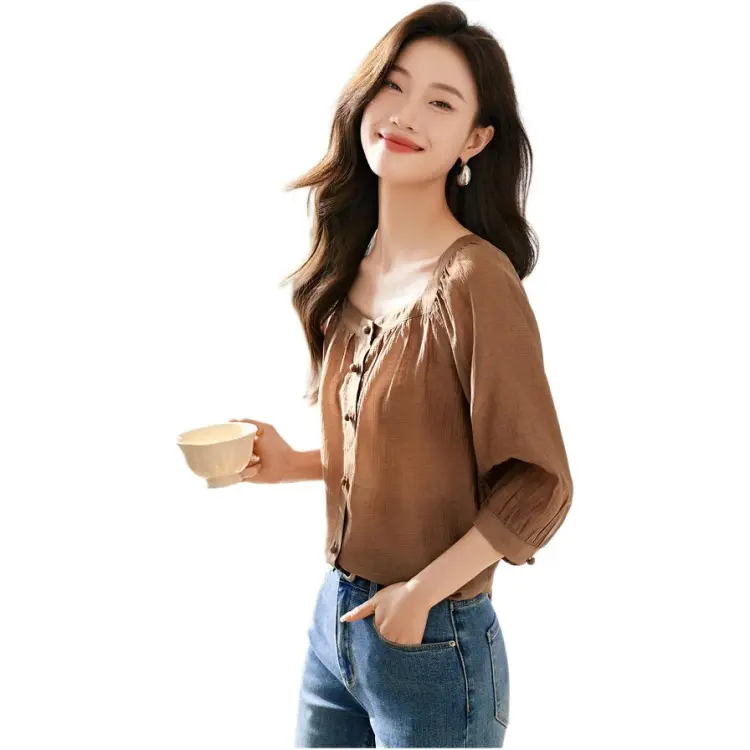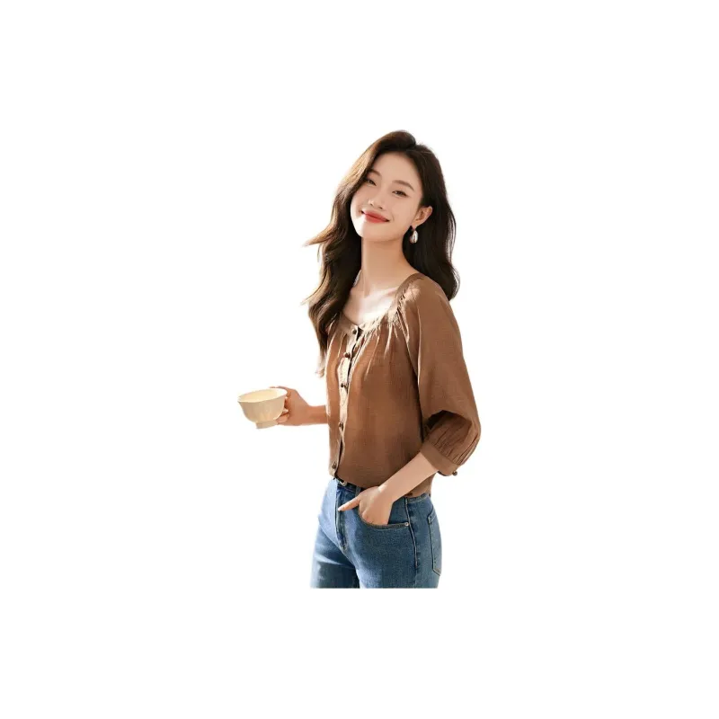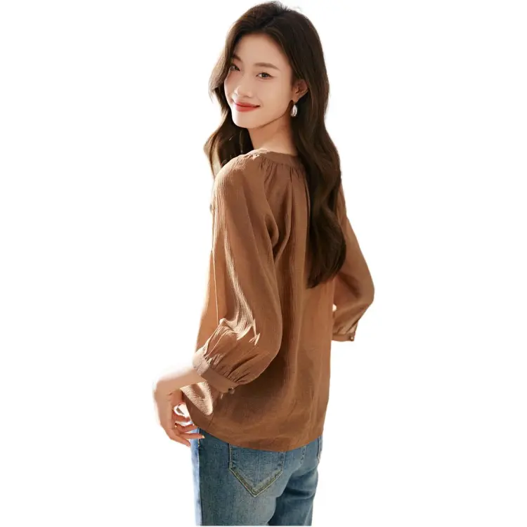 Mo Han Yi Mei Рубашка Женская Темно-Кофейная