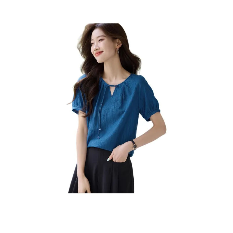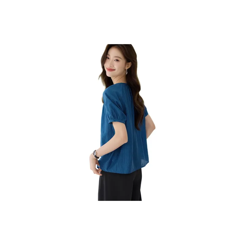 Mo Han Yi Mei Рубашка Женская Павлин Синий