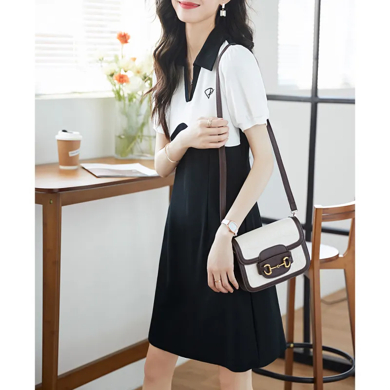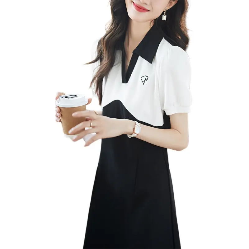 Mo Han Yi Mei Короткий рукав Платье Женское Черное Белое