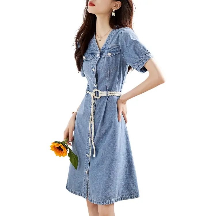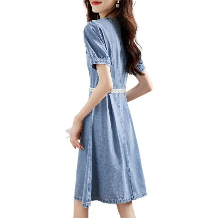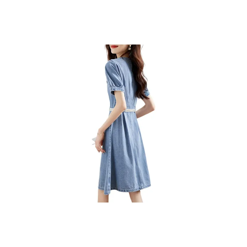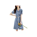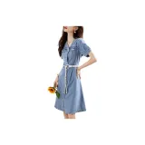 Mo Han Yi Mei Короткий рукав Платье Женское Джинсовый синий