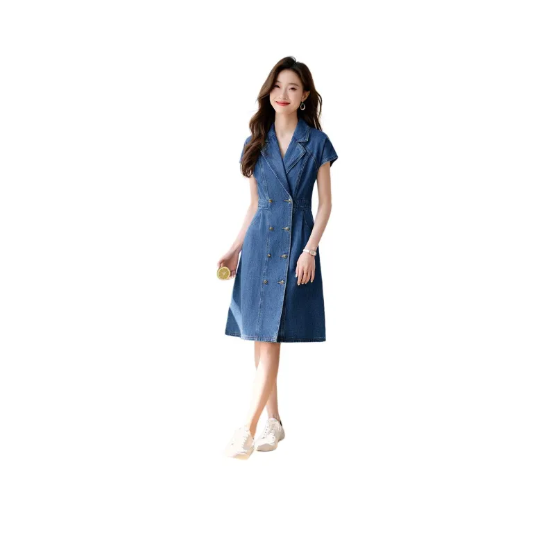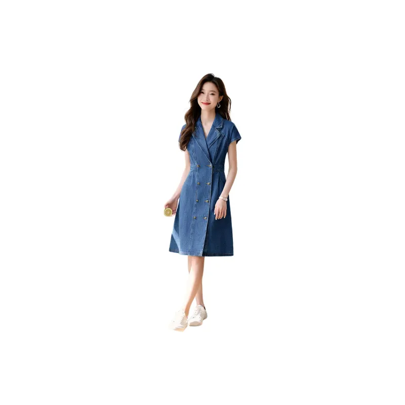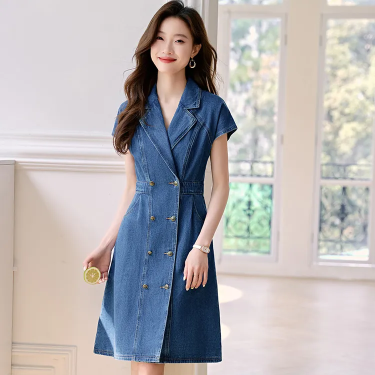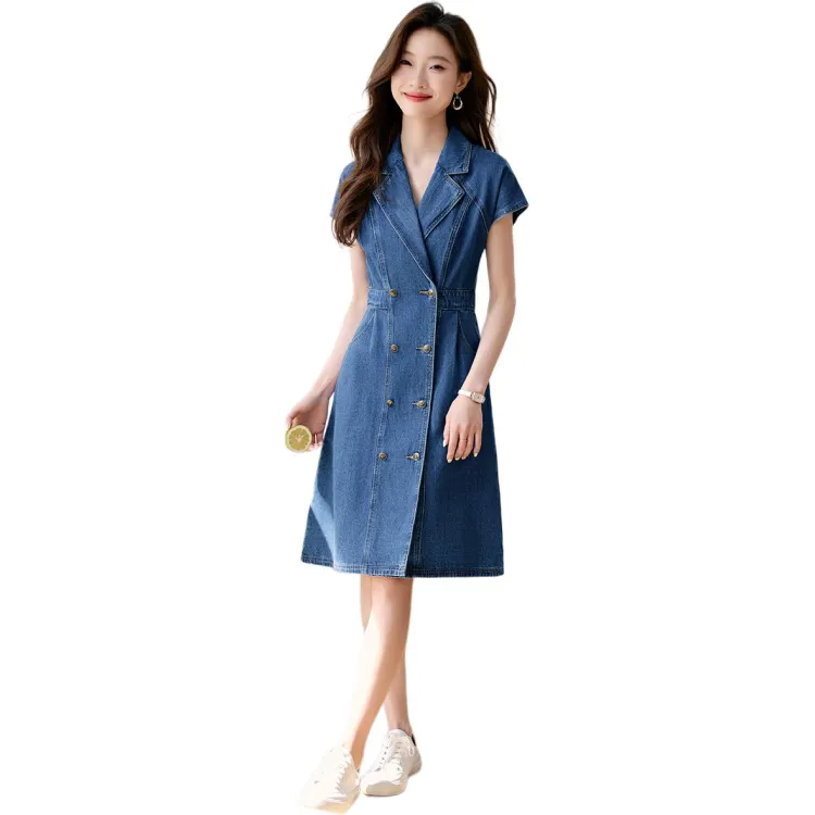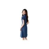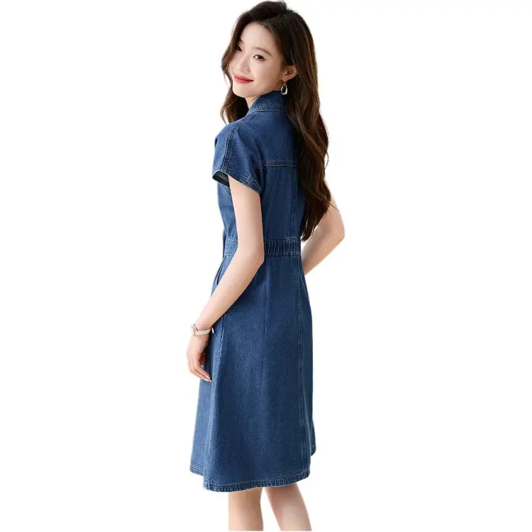 Mo Han Yi Mei Короткий рукав Платье Женское Джинсовый синий