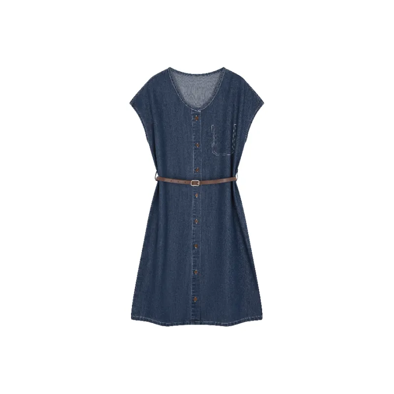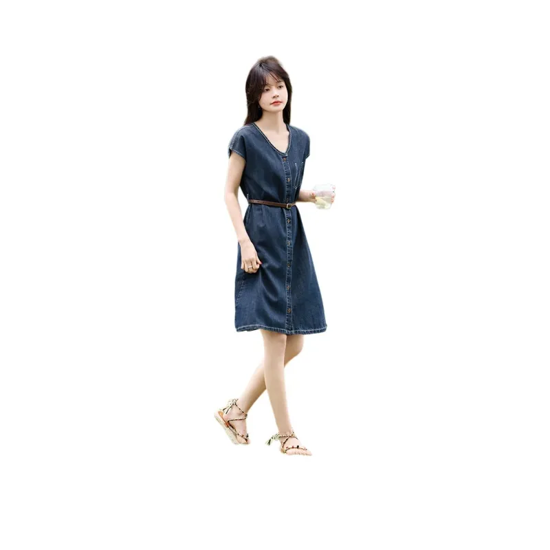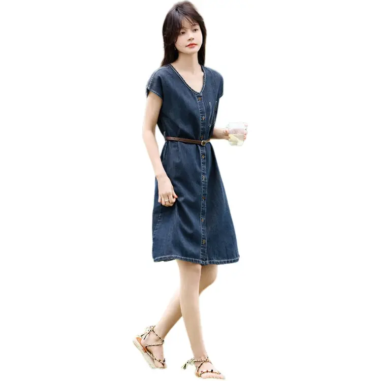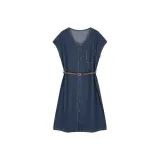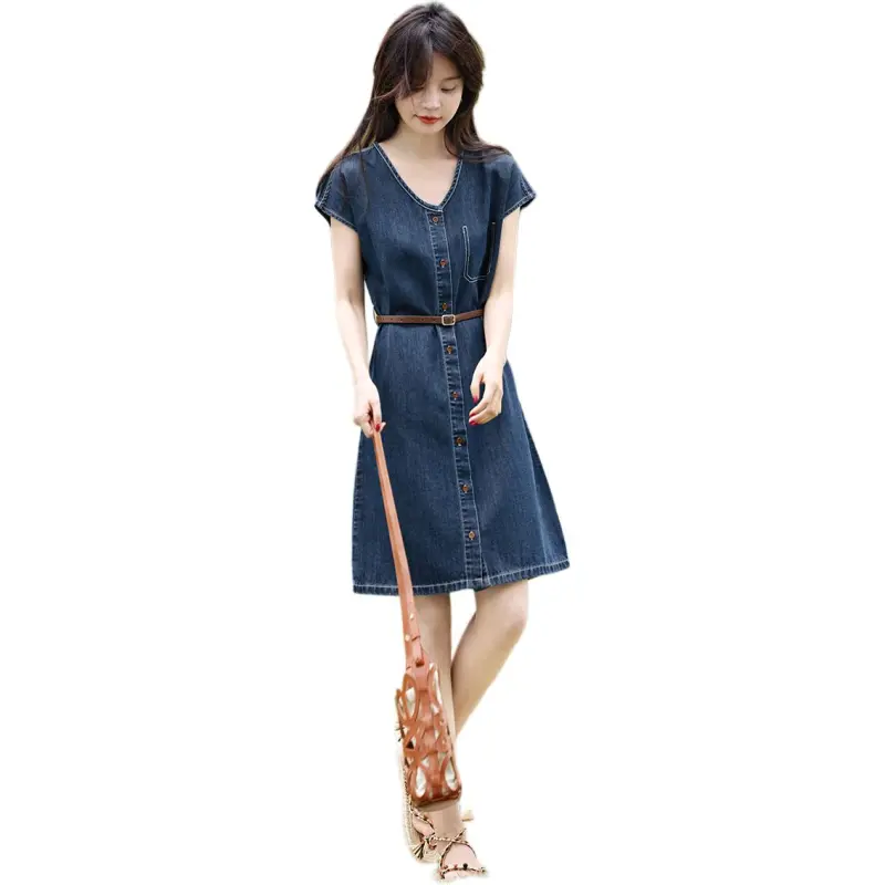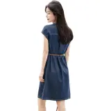 Mo Han Yi Mei Короткий рукав Платье Женское Джинсовый синий
