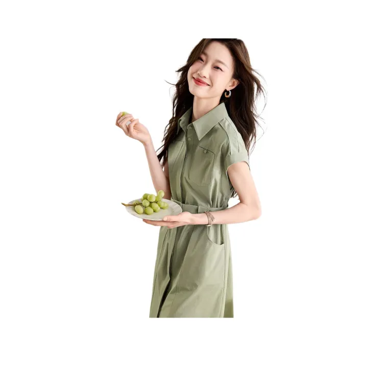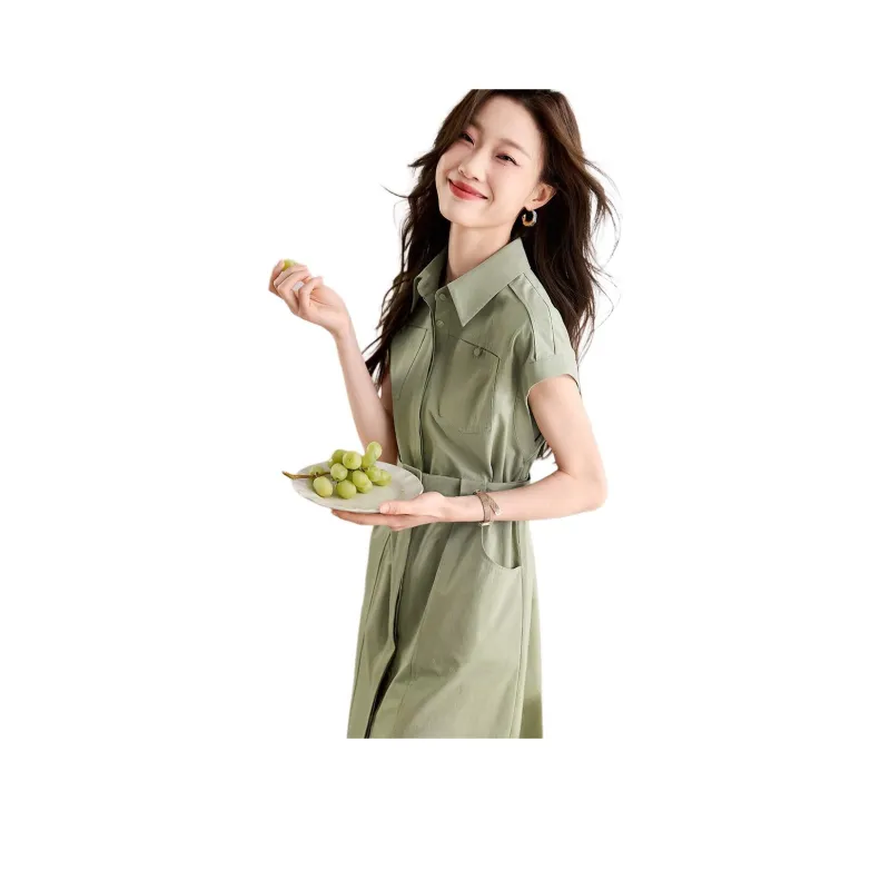 Mo Han Yi Mei Короткий рукав Платье Женское Серый Зеленый