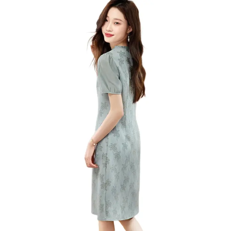 Mo Han Yi Mei Короткий рукав Платье Женское Зеленое