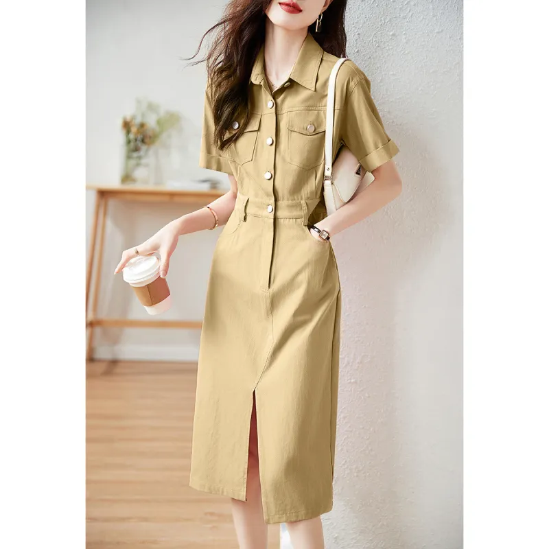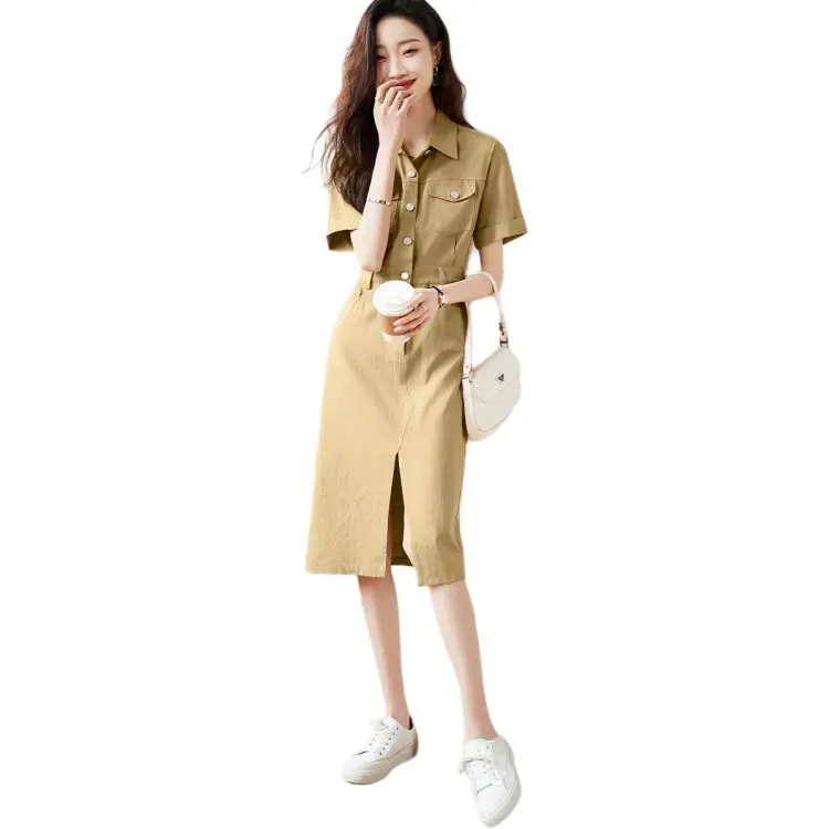 Mo Han Yi Mei Короткий рукав Платье Женское Хаки