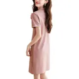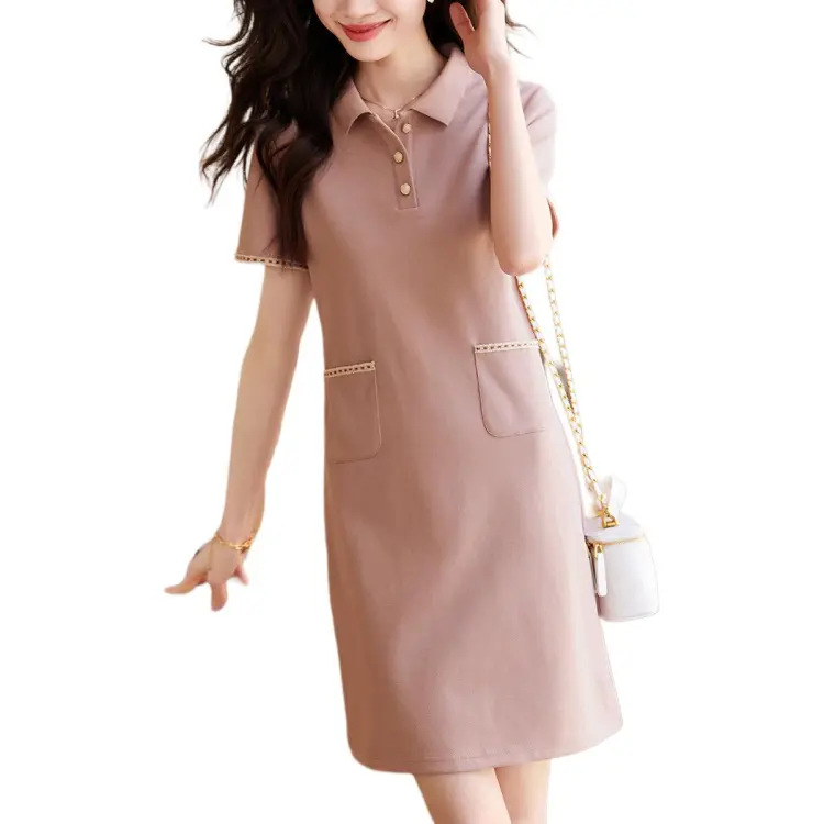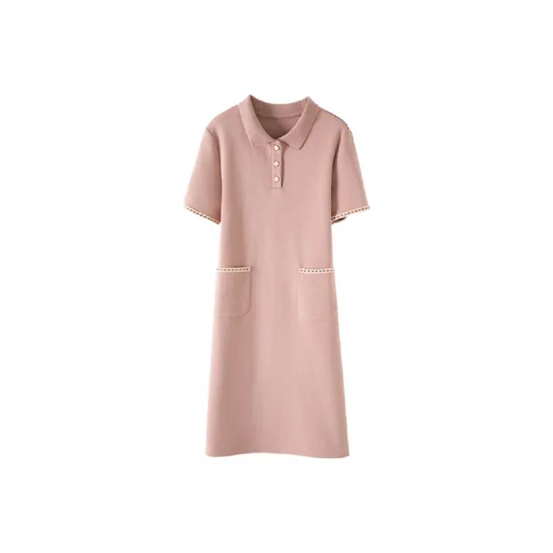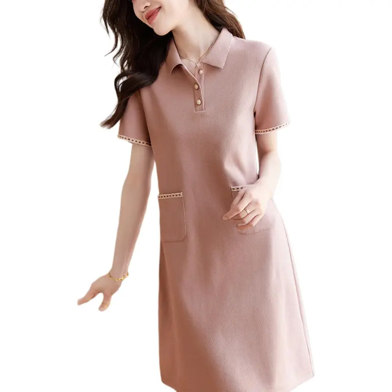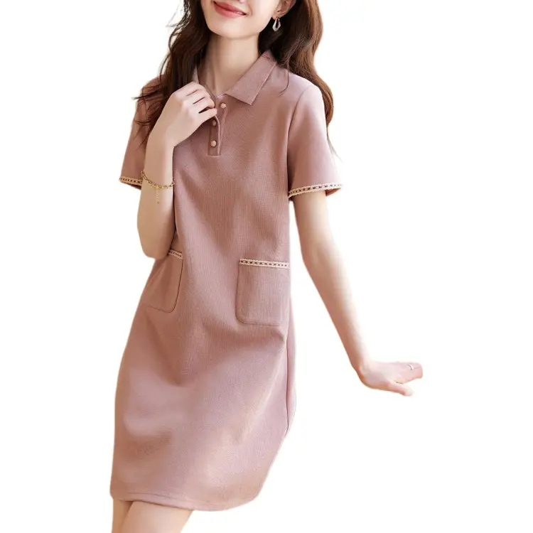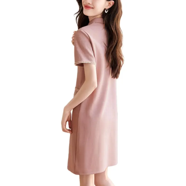 Mo Han Yi Mei Короткий рукав платье женское кожаное розовое