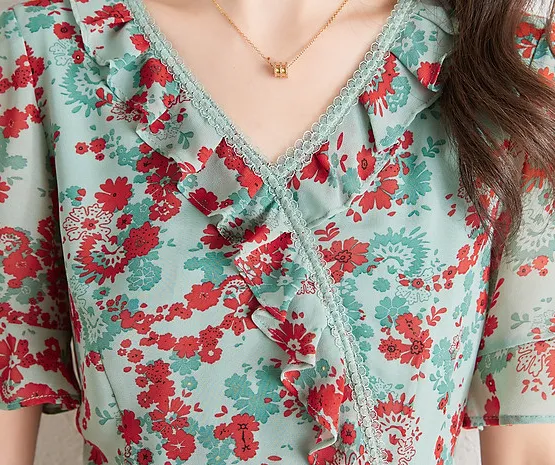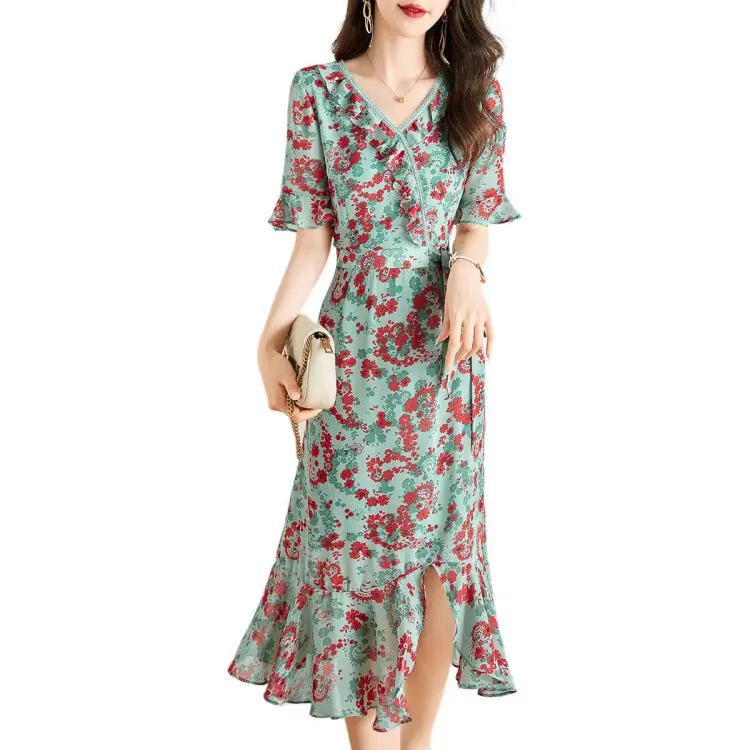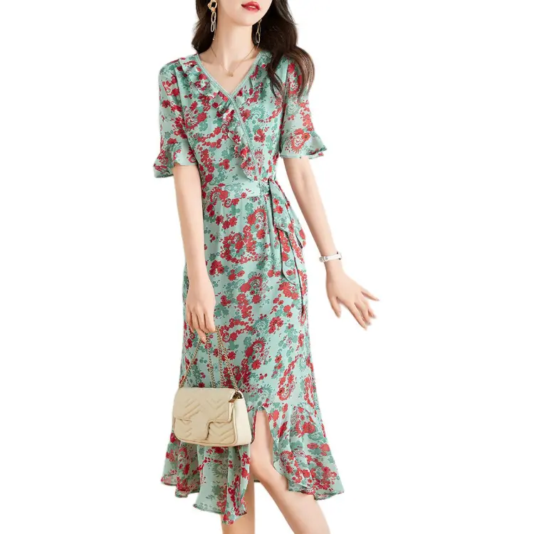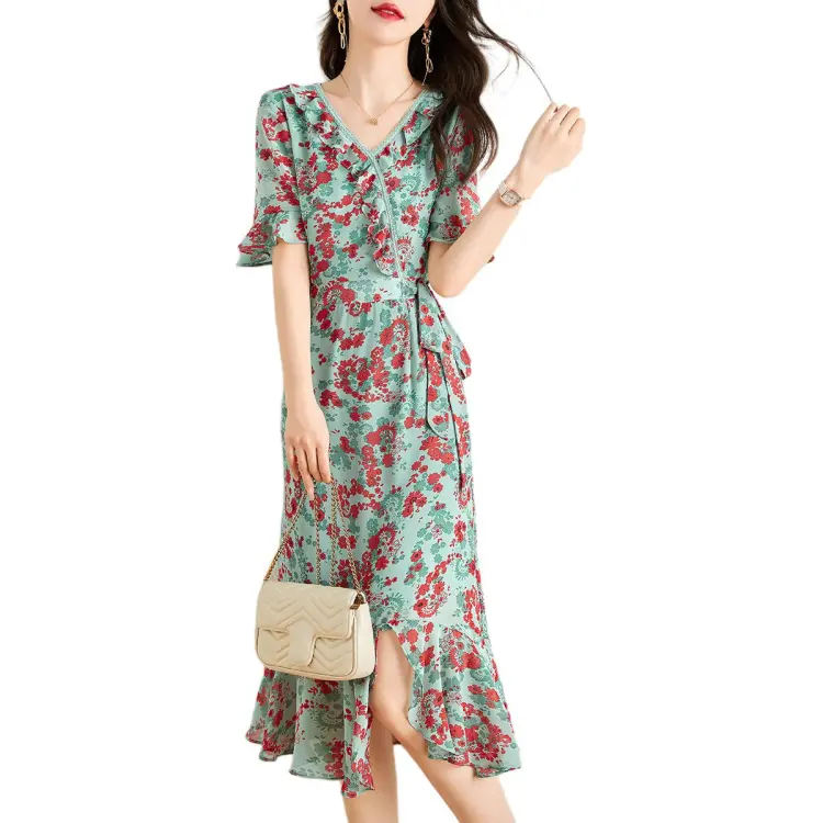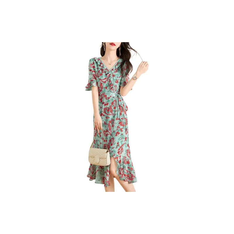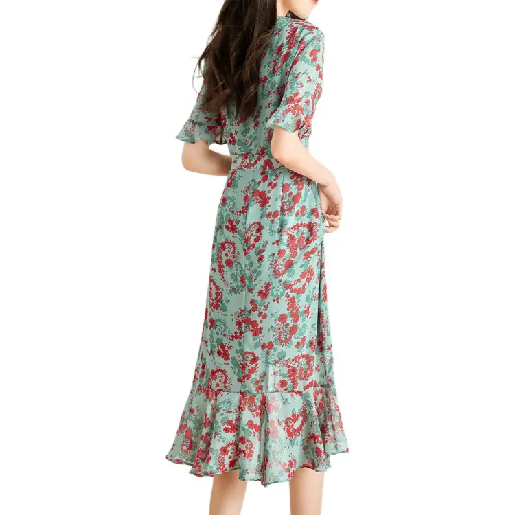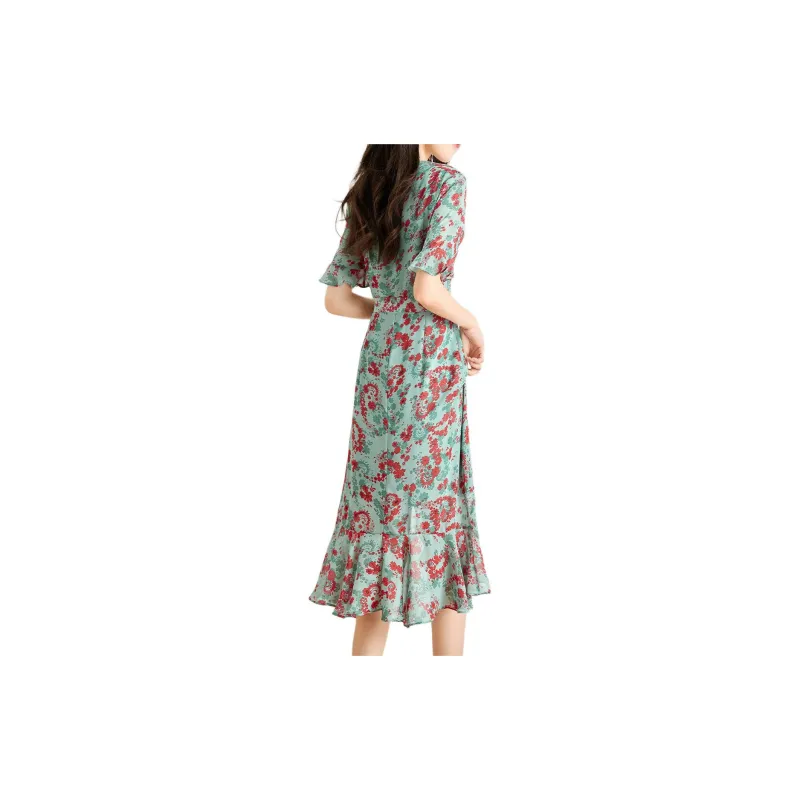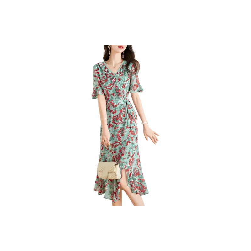 Mo Han Yi Mei Короткий рукав Платье Женское Зеленое