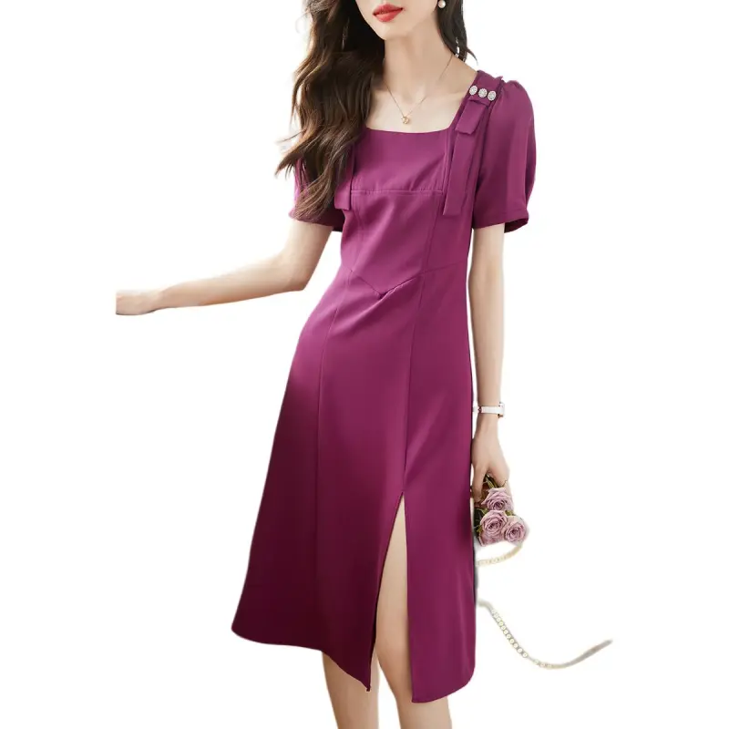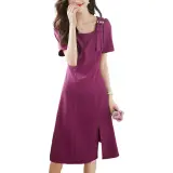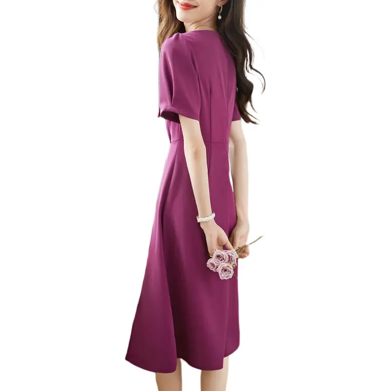 Mo Han Yi Mei Короткий рукав Платье Женское Розово-красное