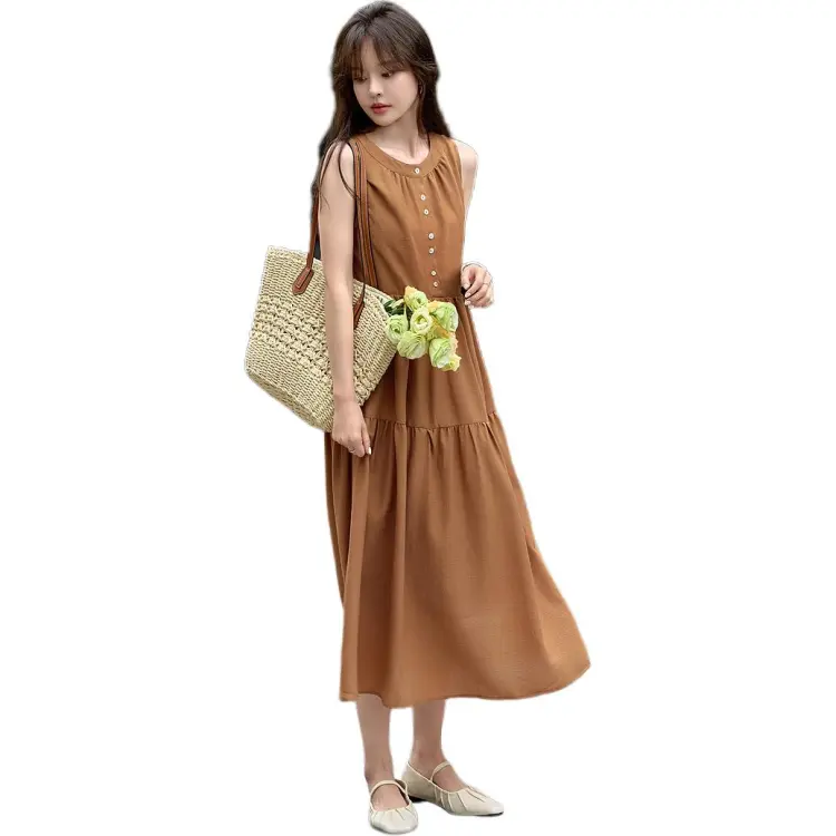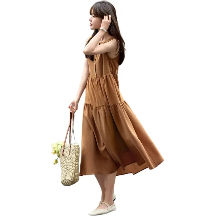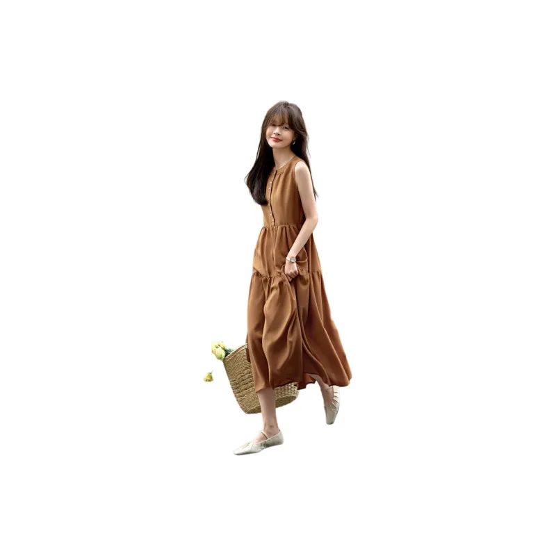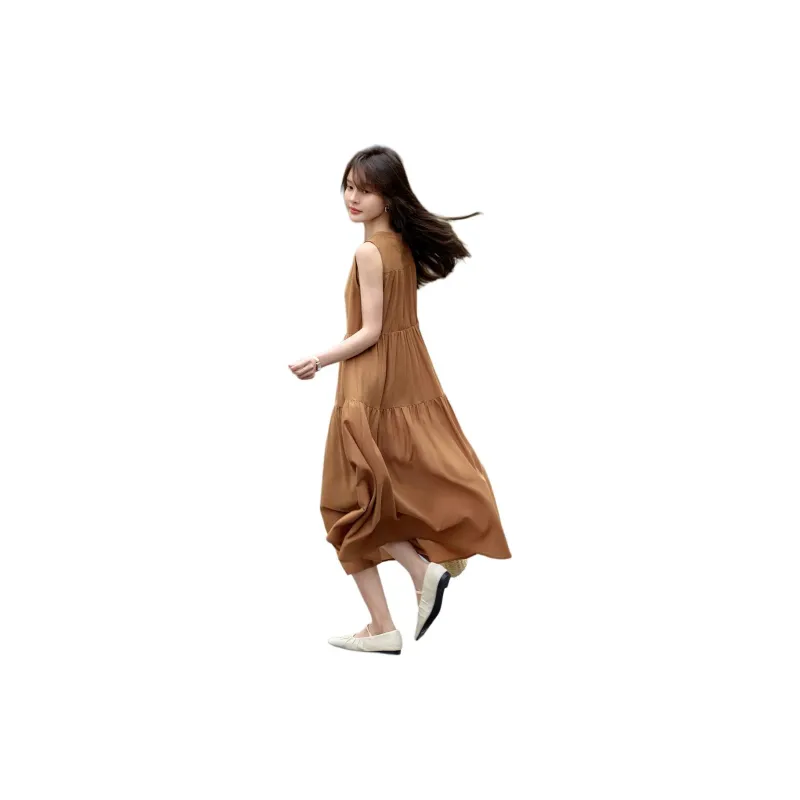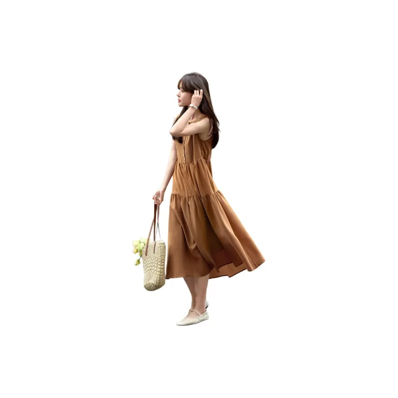 Mo Han Yi Mei Без рукавов Платье Женское Карамель