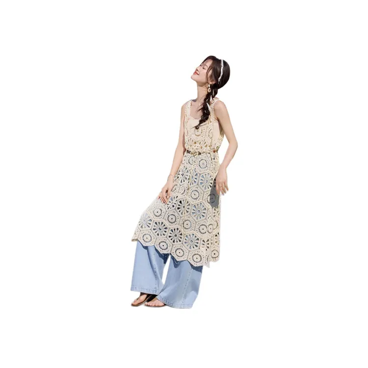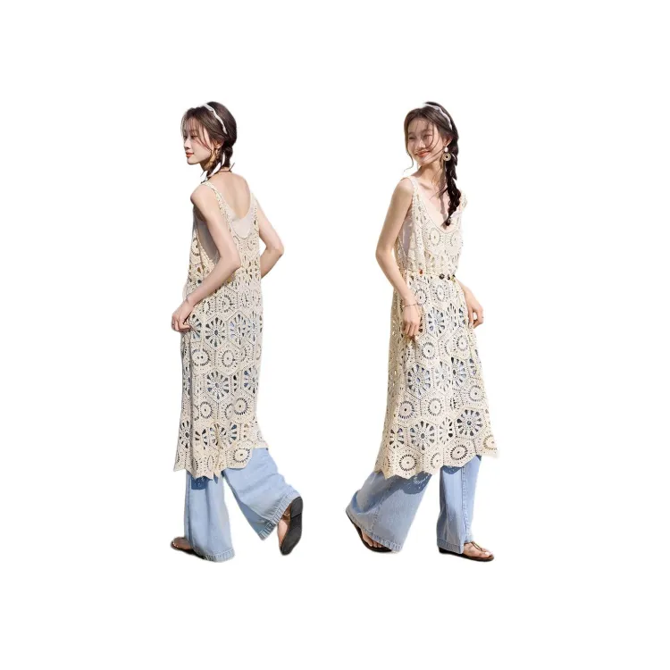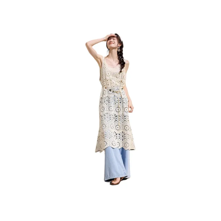 Mo Han Yi Mei Без рукавов Платье Женское Экрю