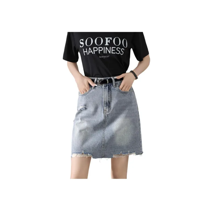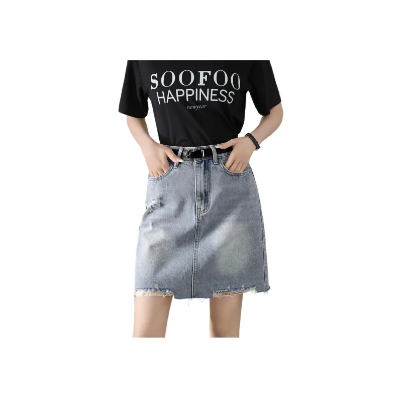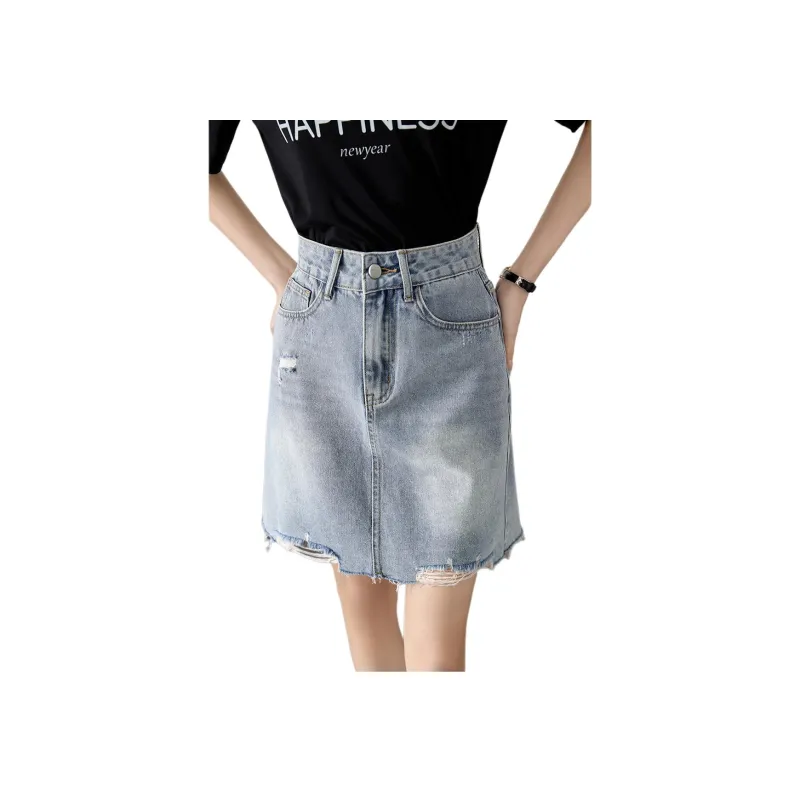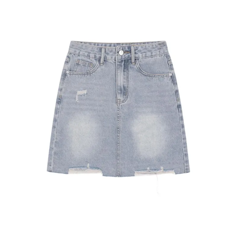 Mo Han Yi Mei SS24 Джинсовые короткие юбки Женские Винтажный светло-голубой