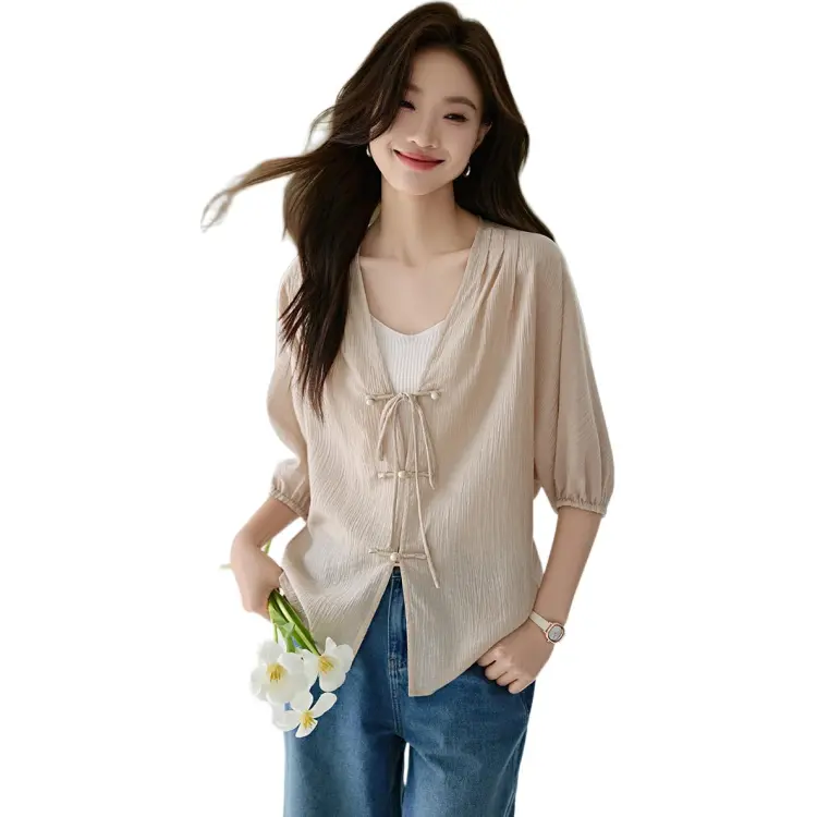 Mo Han Yi Mei SS24 Рубашка Женская Бежевая Абрикосовая