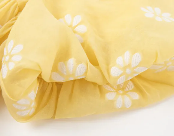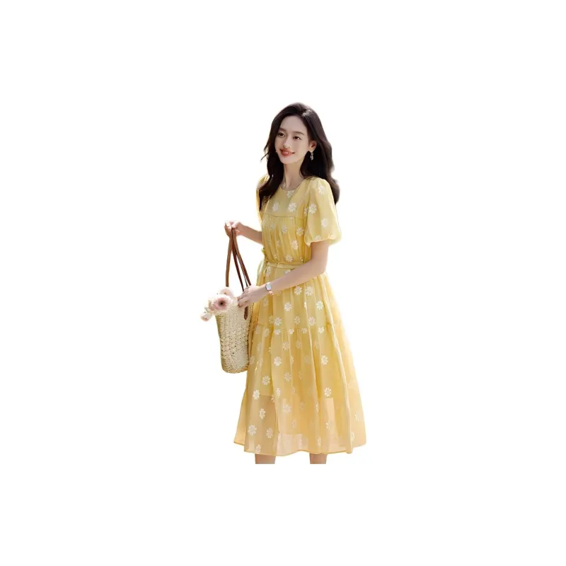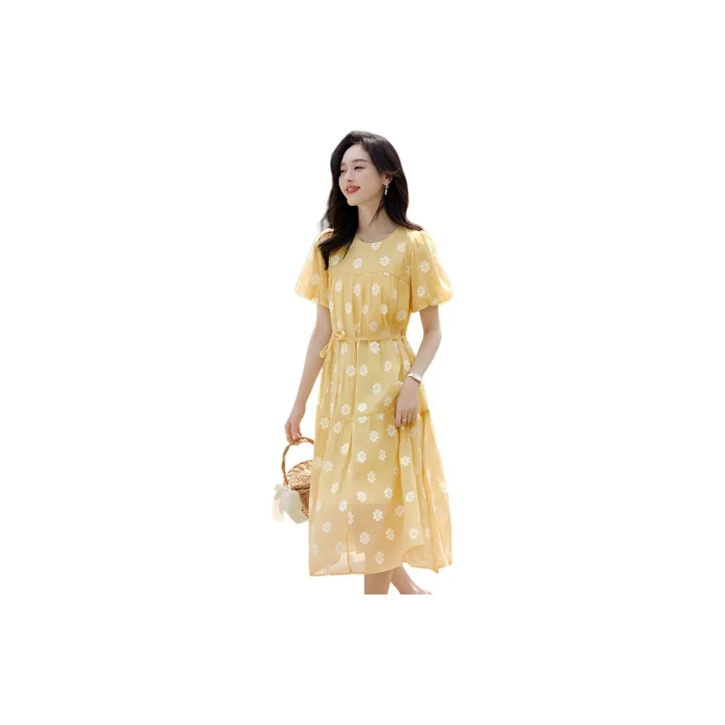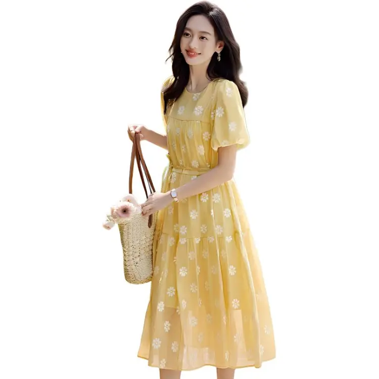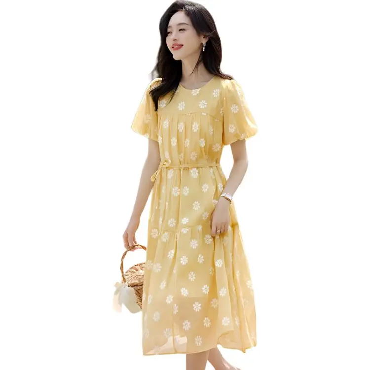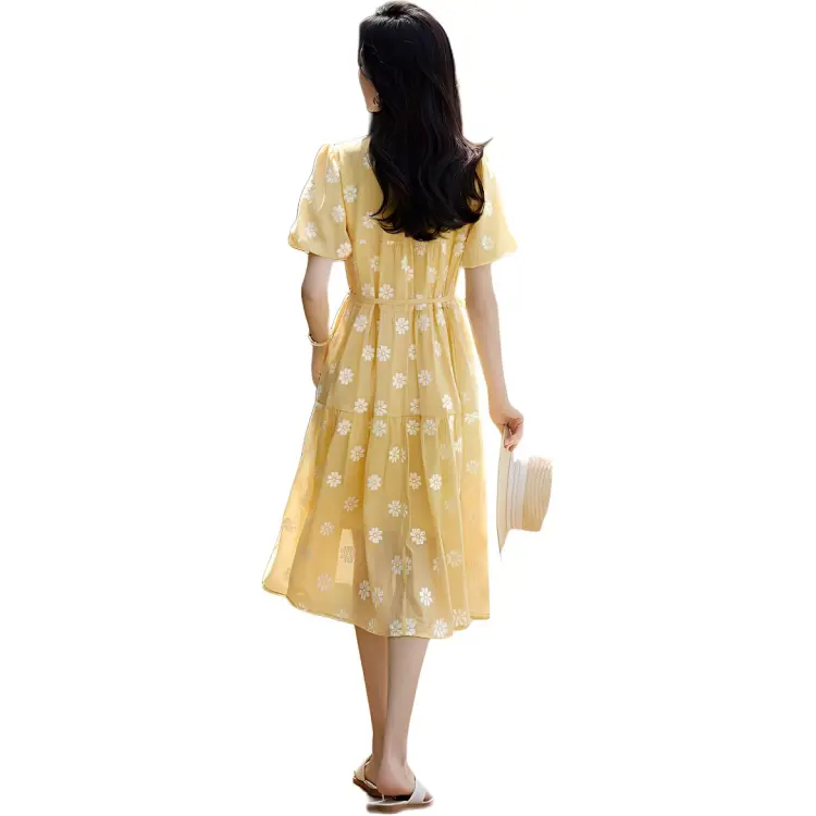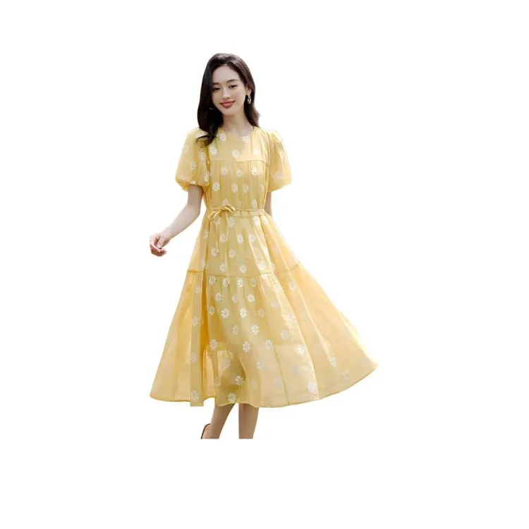 Mo Han Yi Mei SS24 Короткий рукав Платье Женское Ярко-желтое