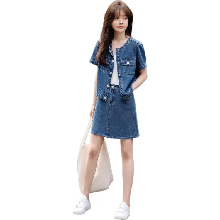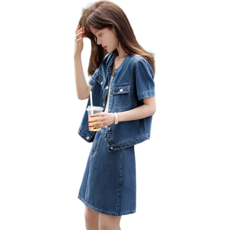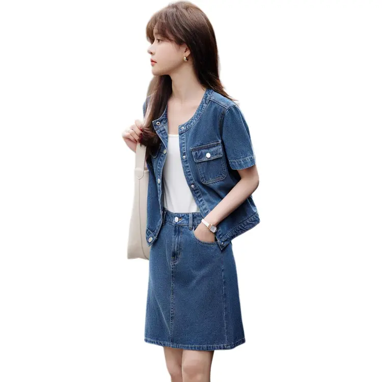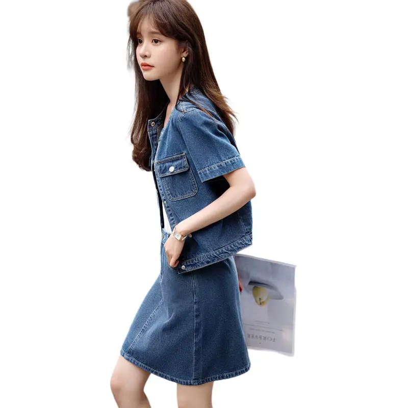 Mo Han Yi Mei SS24 Комплект с юбкой Женские Джинсовый синий