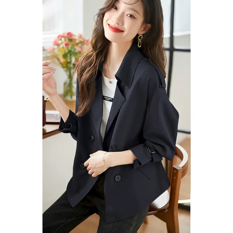 Mo Han Yi Mei Тренчкот Женский Темно-синий