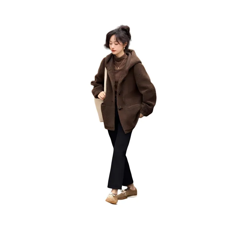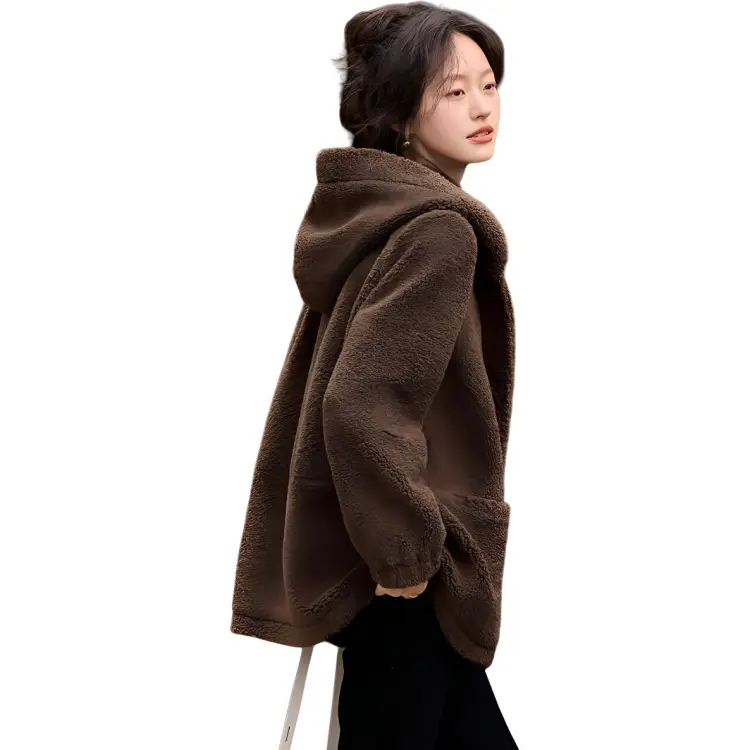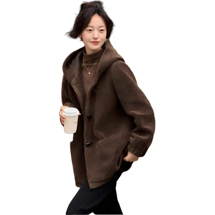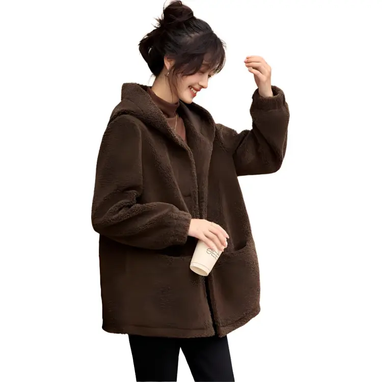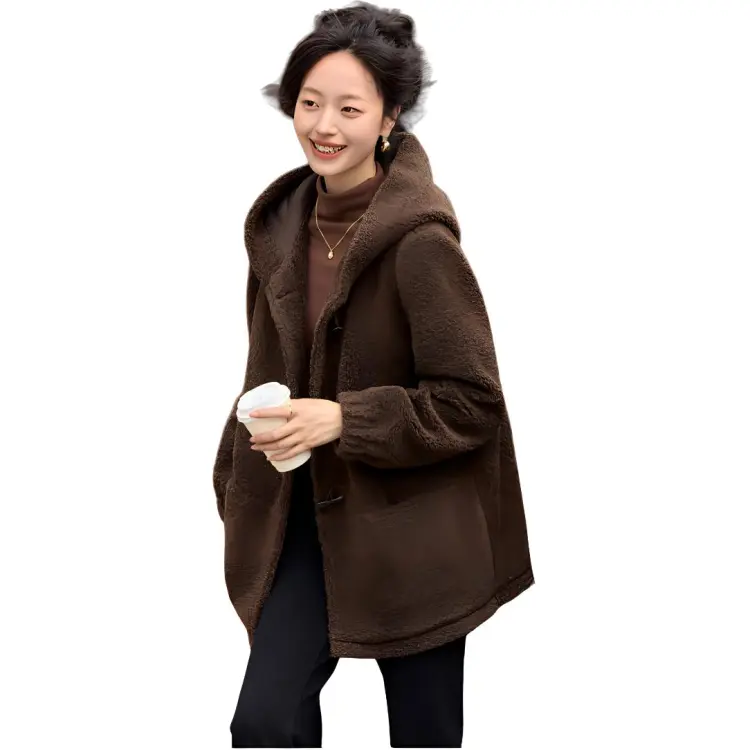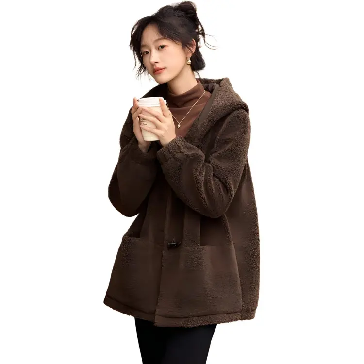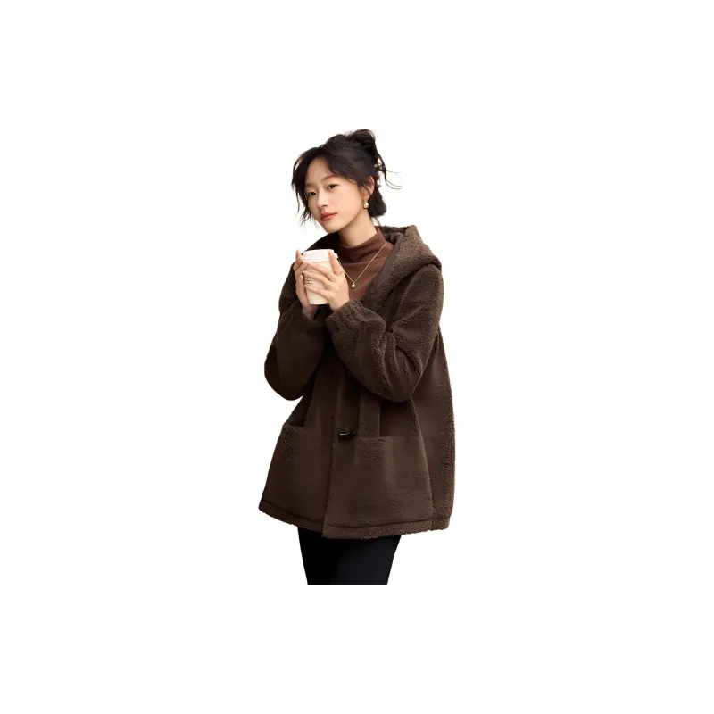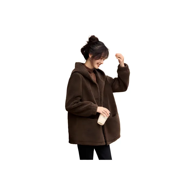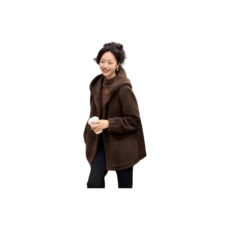 Mo Han Yi Mei Вельвет Feel Пальто Женское Кофейное