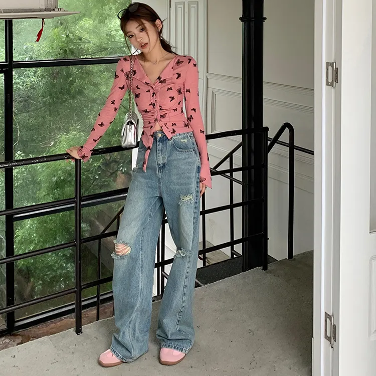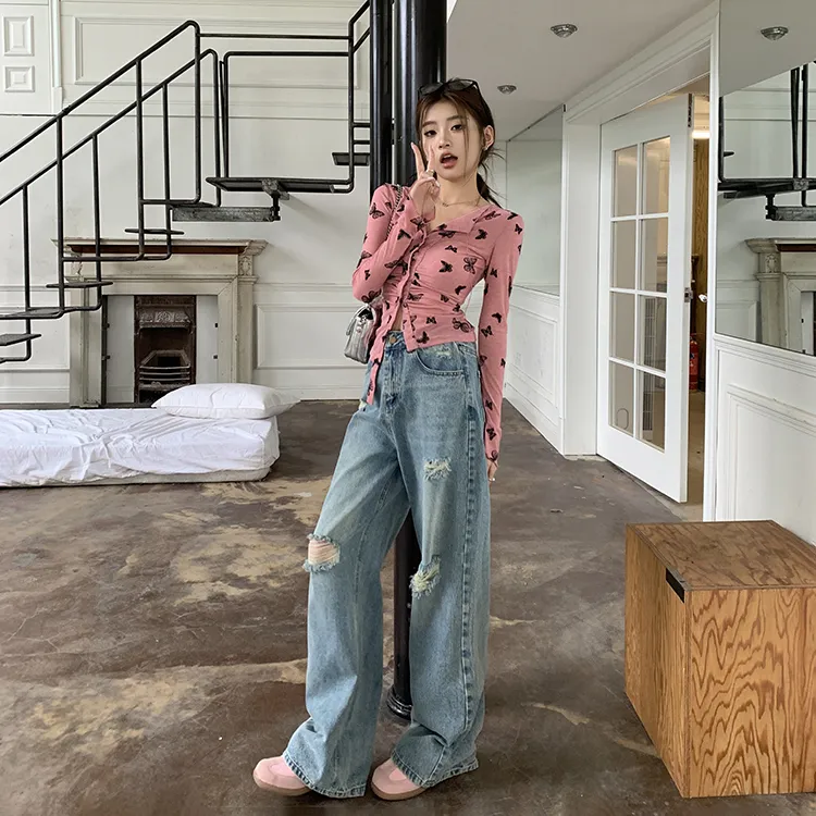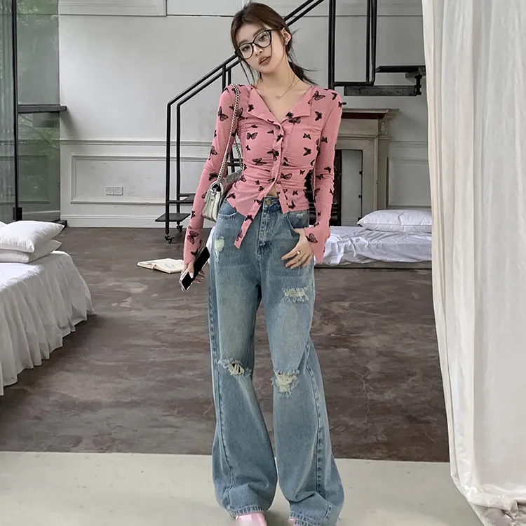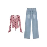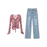 Комплект:Розовый топ + джинсы