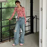 Розовый топ + джинсы