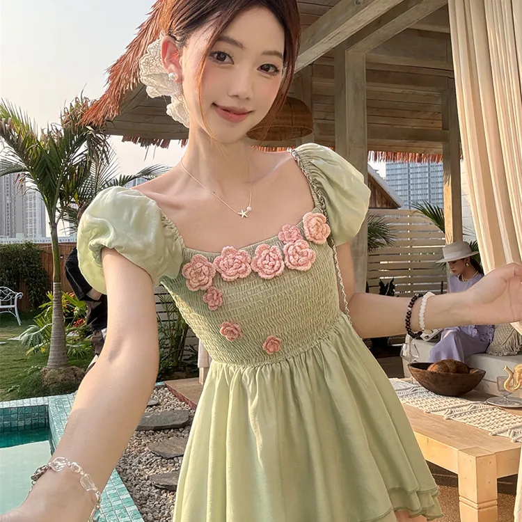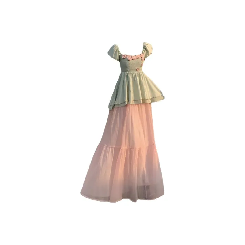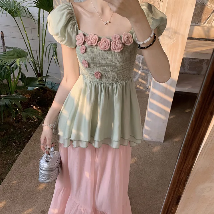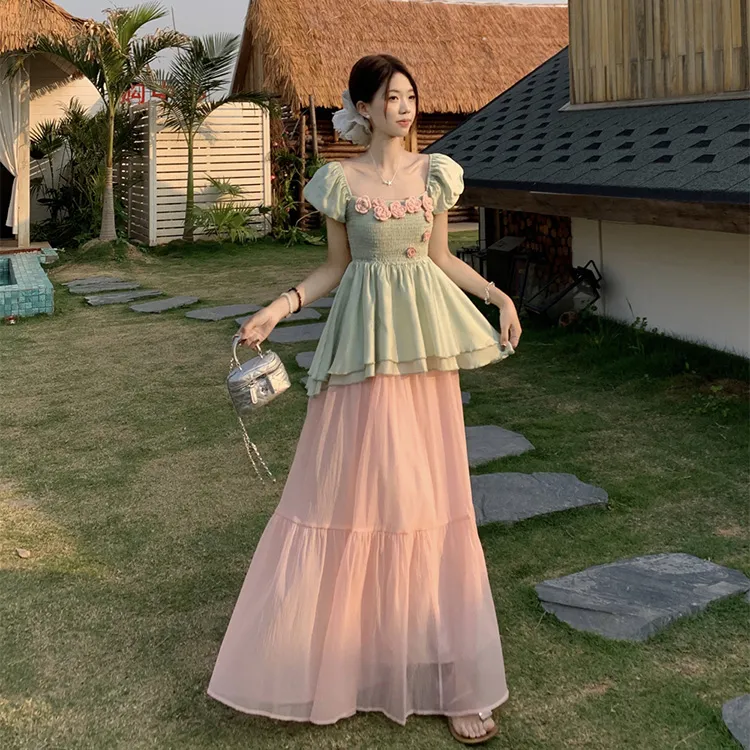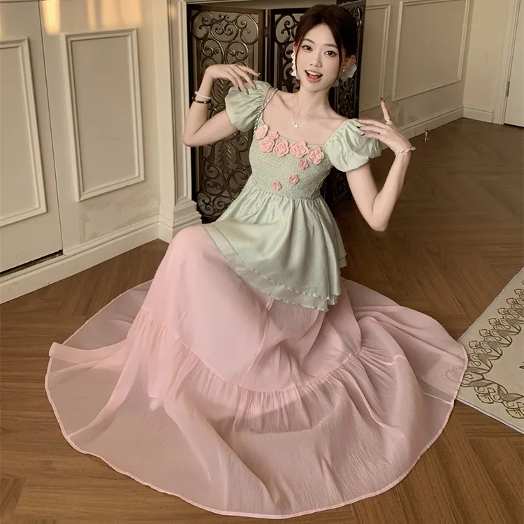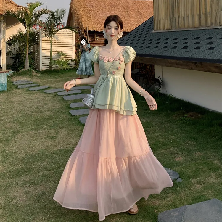 Комплект:Комплект одежды (Зеленый топ + Розовая юбка)