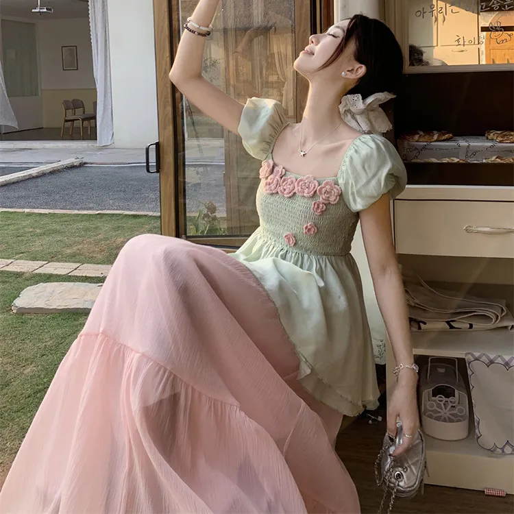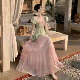 Комплект одежды (Зеленый топ + Розовая юбка)