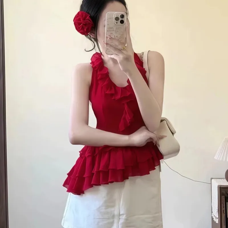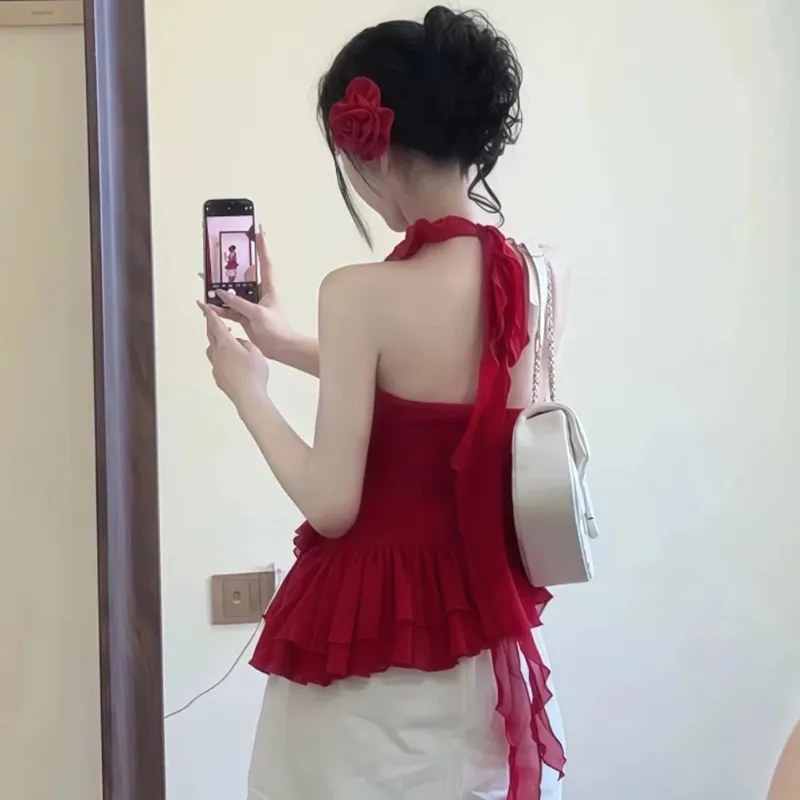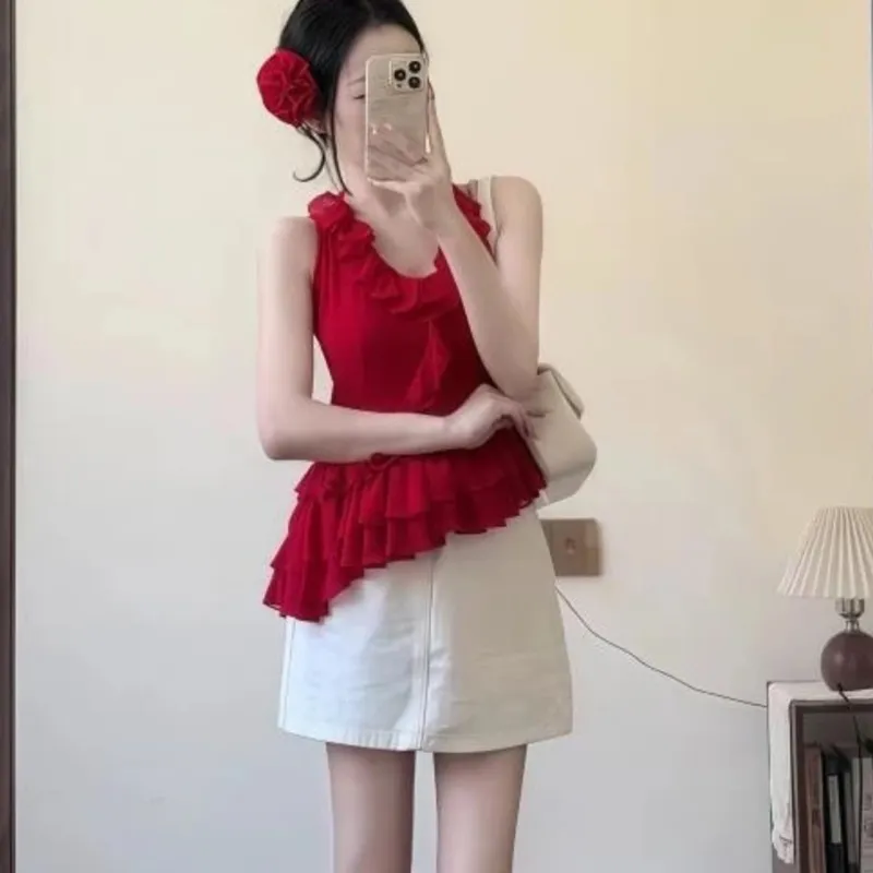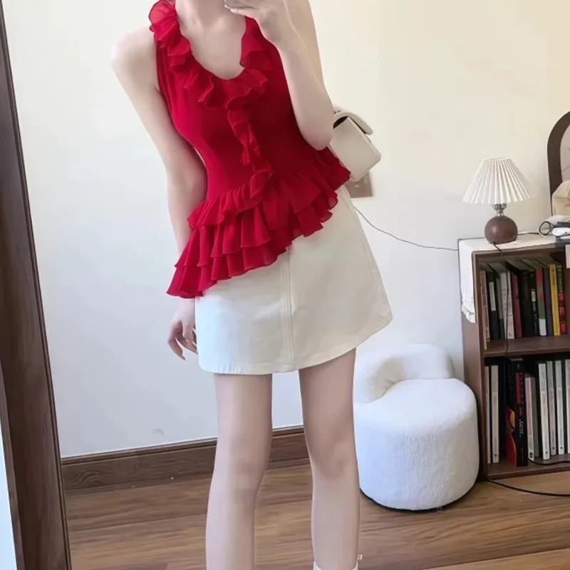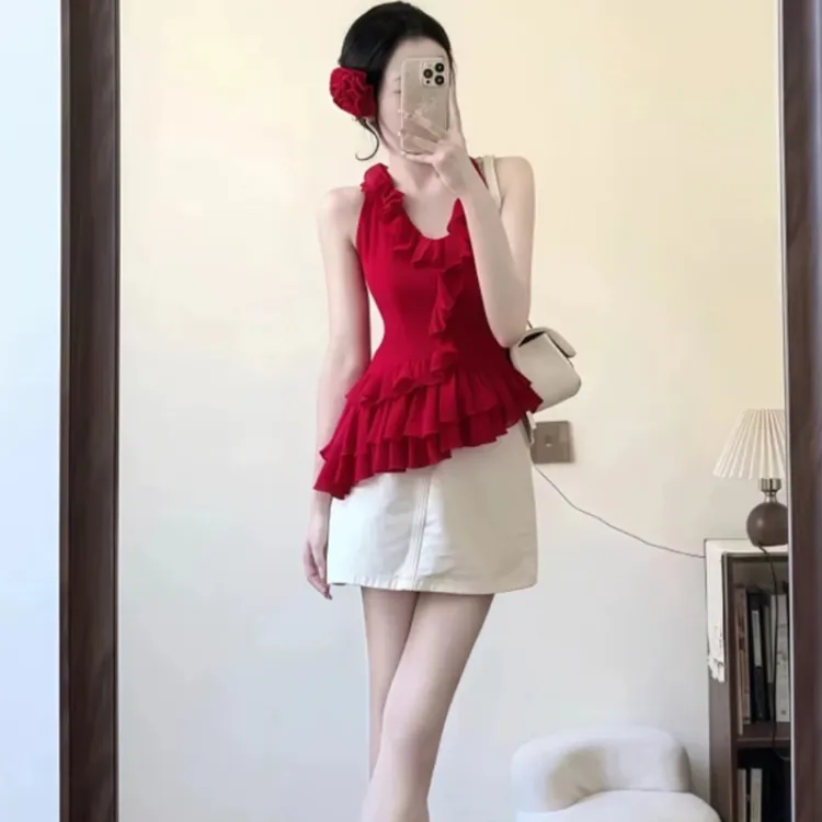 Комплект одежды (Красный топ + Короткая юбка)