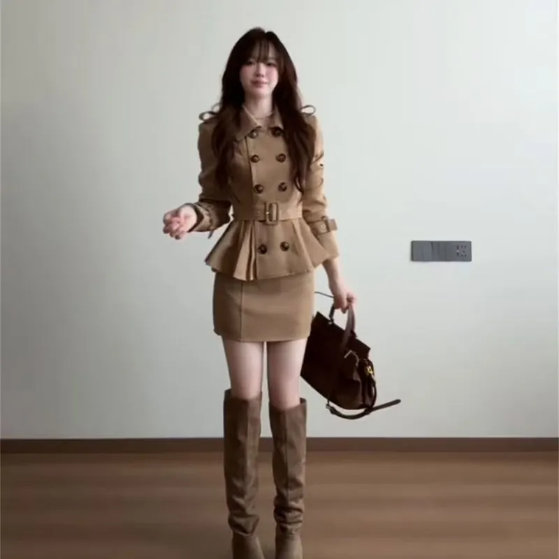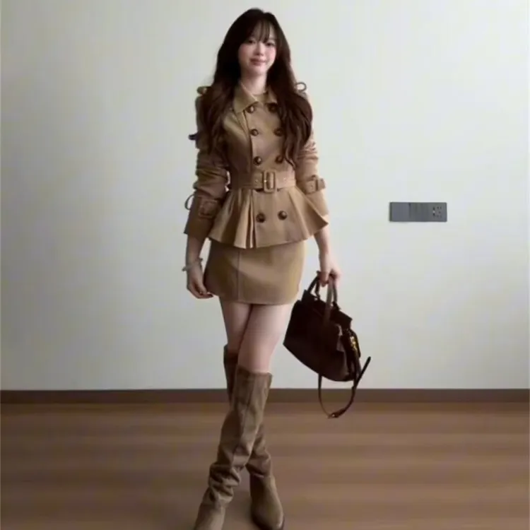 Set (Khaki Coat + Khaki Skirt) Комплект (Хаки Пальто + Хаки Юбка)