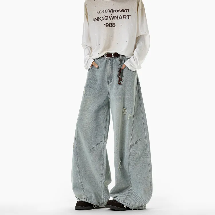 MOGAO Светло-синие Унисекс Джинсы