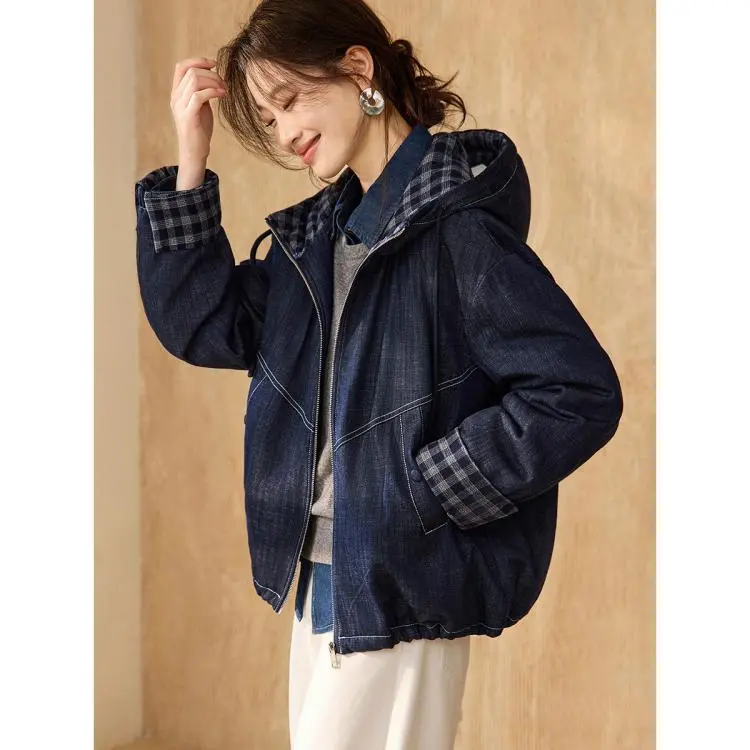 MOHANYIMEI Оригинальный деним синий женский пуховик