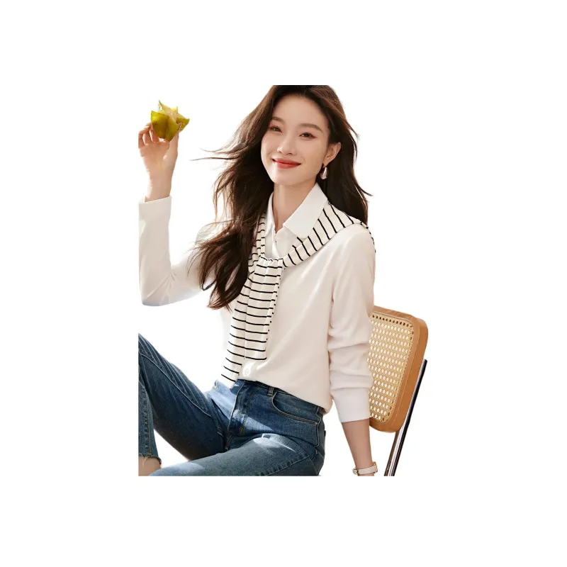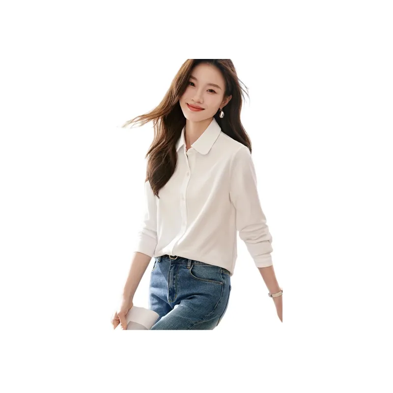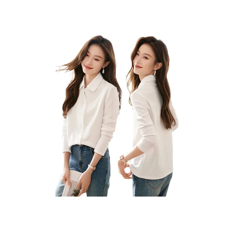 MOHANYIMEI Натуральный Белый Длинный Рукав Женская Рубашка