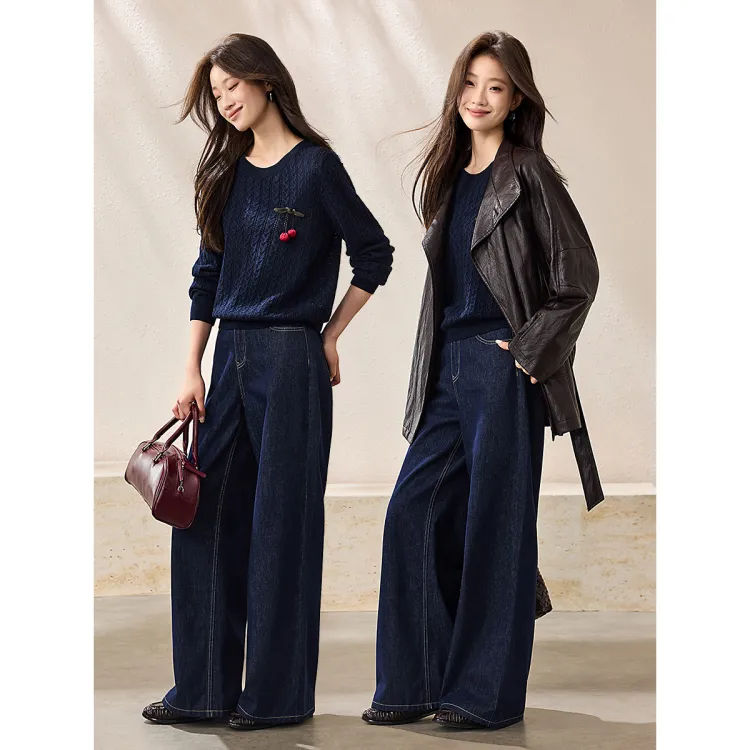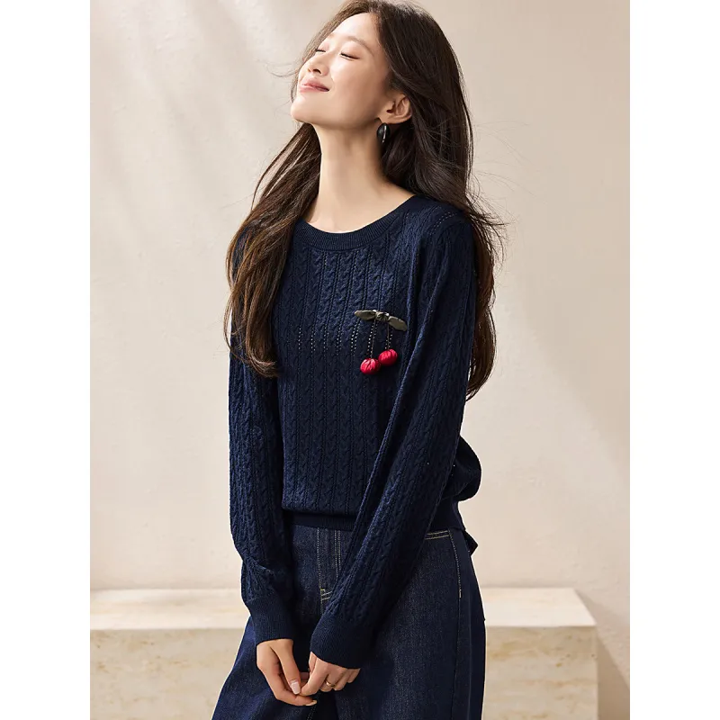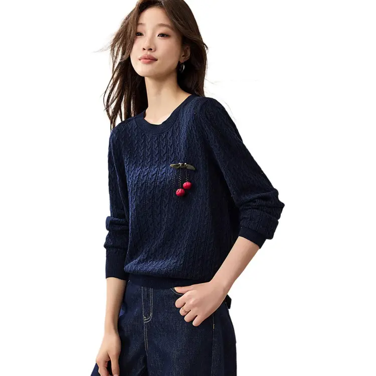 MOHANYIMEI Винтажный синий женский свитер