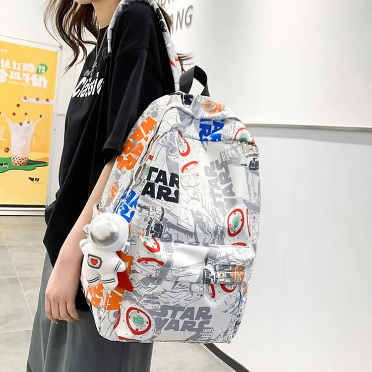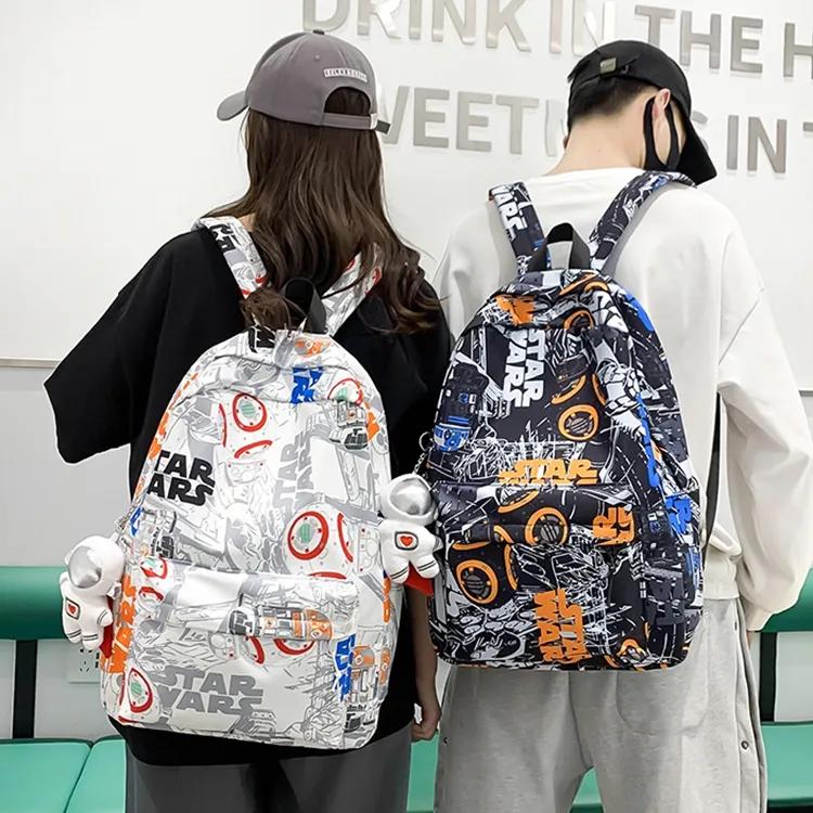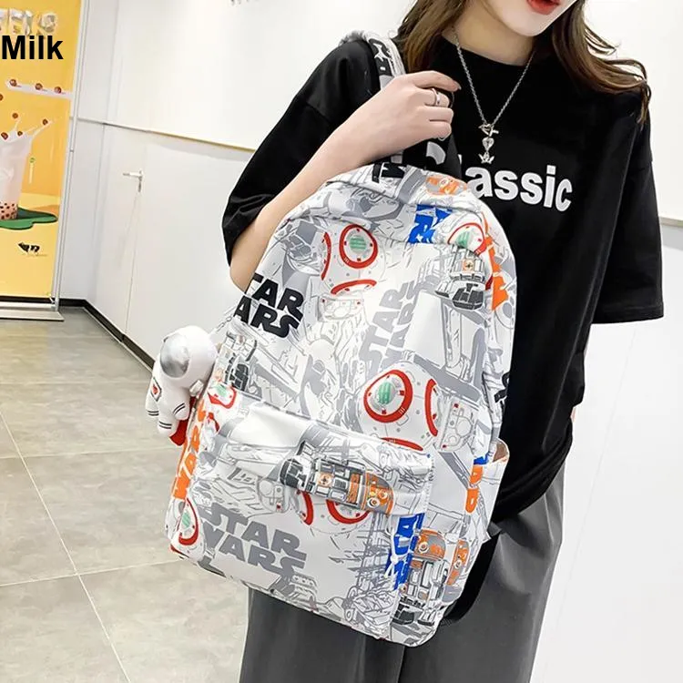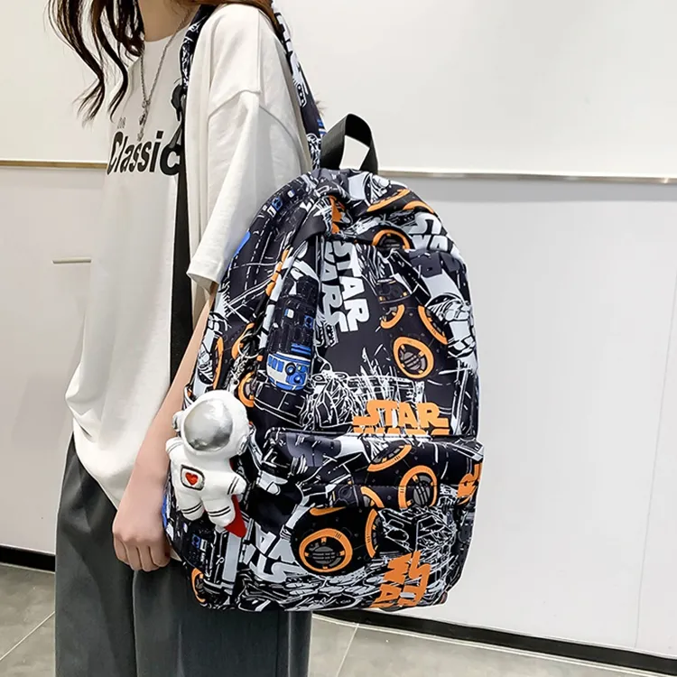 MOK Nylon Backpack Unisex Black Blue White Orange White