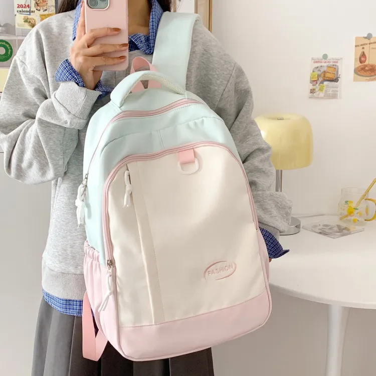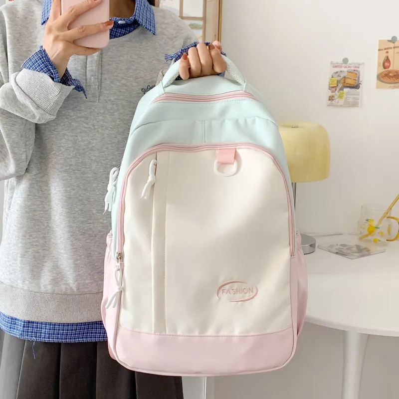 MOK Нейлоновый Рюкзак Стандартный Женский Светло-Синий Светло-Розовый