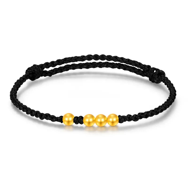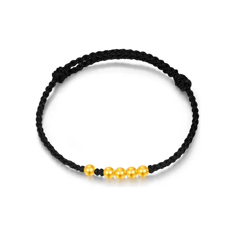 [Улучшенный] 4 Золотые Бусины на всю жизнь [Черная веревка Золото весит примерно 0,3 грамма]