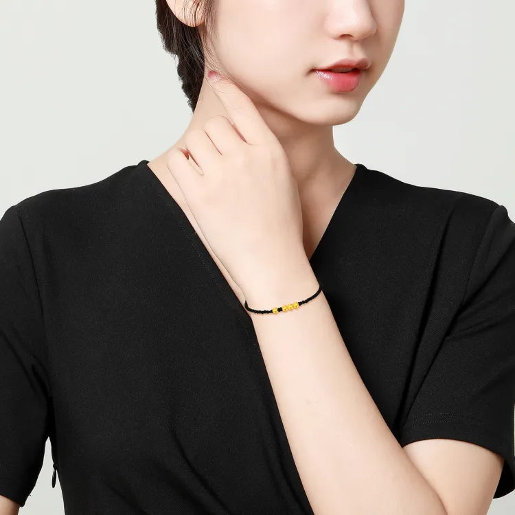 Характеристики:4 Life Gold Beads [Стиль с черным шнуром, Вес золота примерно 0,18 грамма]