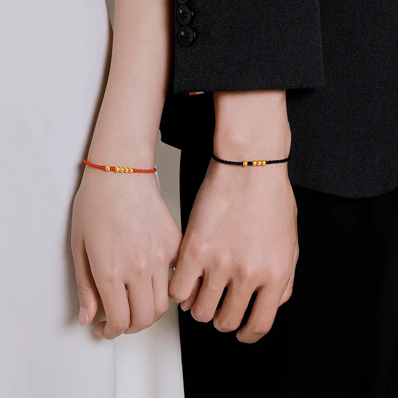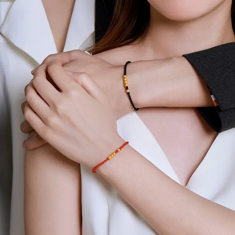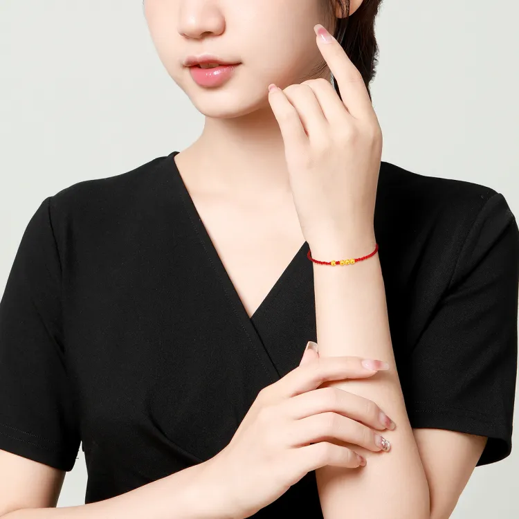 Четыре Золотистые Бусины для Всю жизнь [Красная Нить Стиль, Вес Золото Примерно 0,18 Грамм]