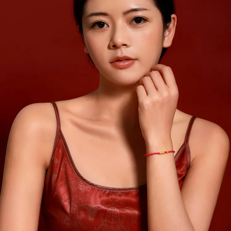 [Улучшенный] I 5 Золотой Бусины [Красная веревка Модель Вес золота примерно 0,24 грамма]