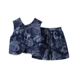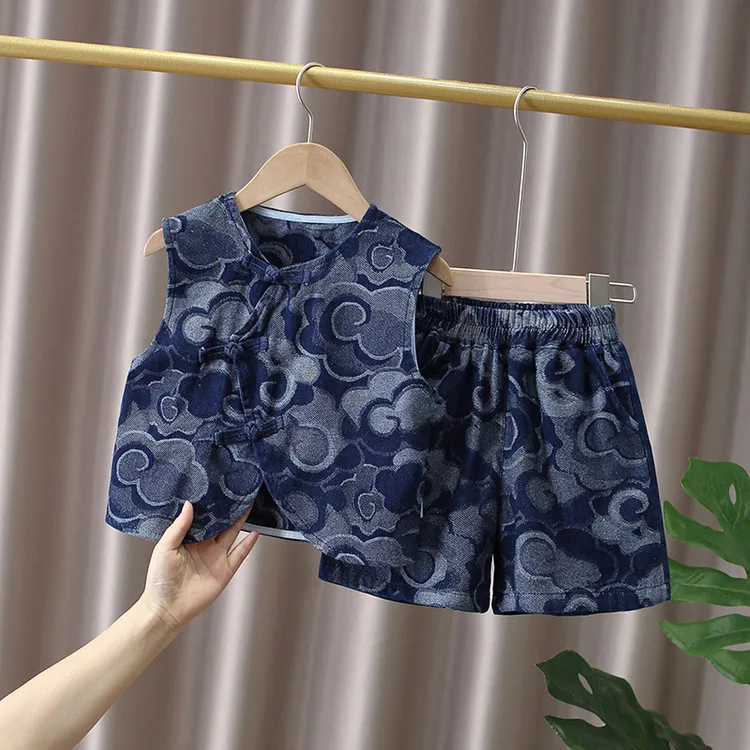 momasong Повседневная спортивная одежда 2 предмета комплект синий для детей 3-7 лет