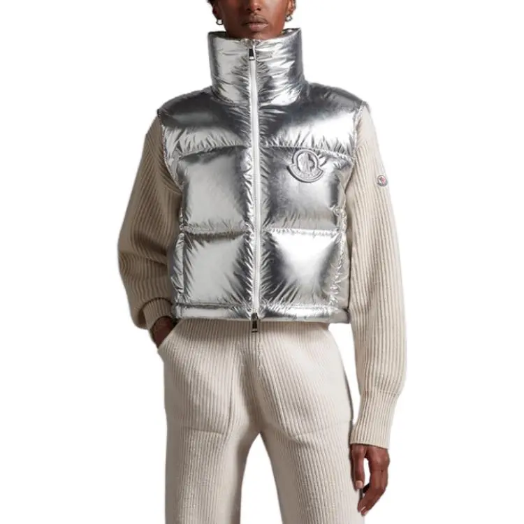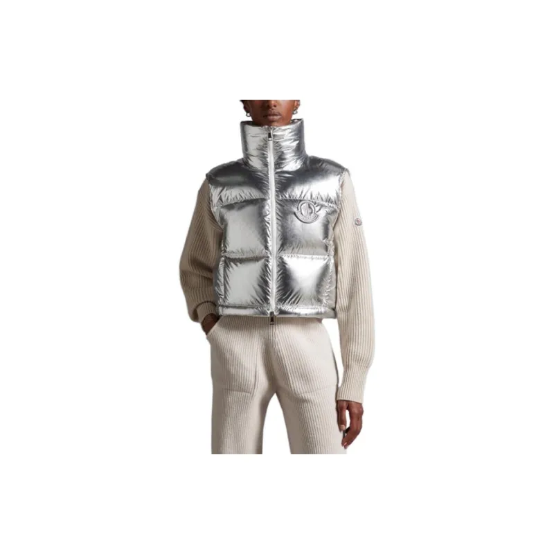 MONCLER Серебряный Женский Пуховый жилет