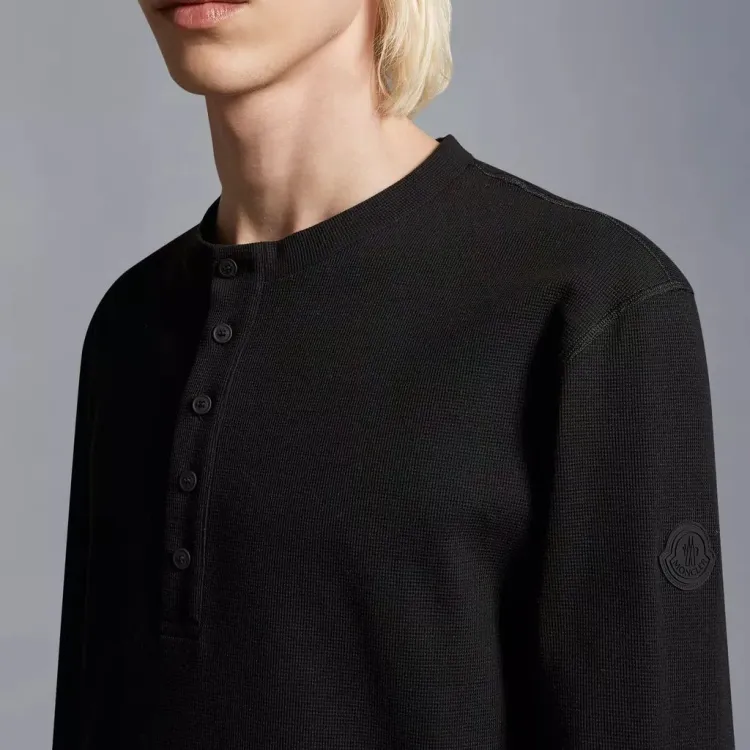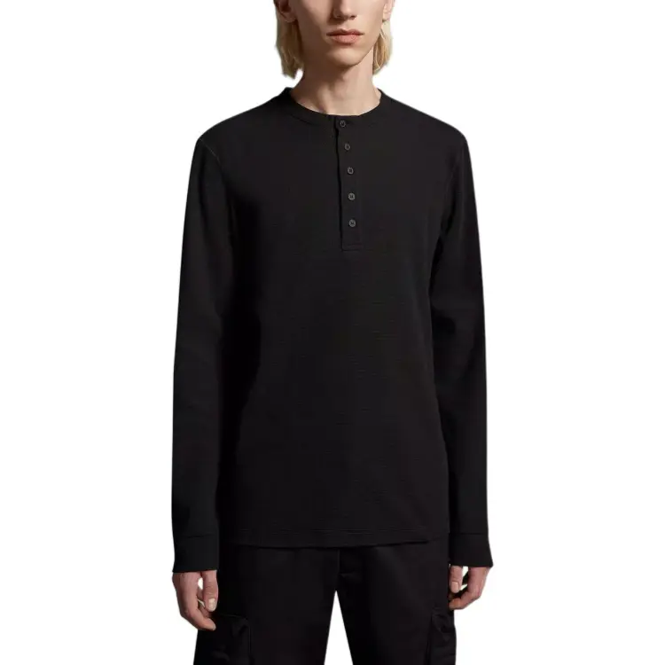 Moncler Хлопок Кнопка Длинный Рукав Рубашка Рубашка Мужская Черная