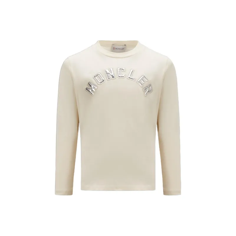 MONCLER Детская одежда FW23 Логотип Длинный рукав Т-рубашка Толстовка Детский Бежевый