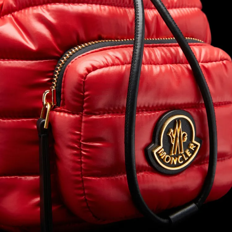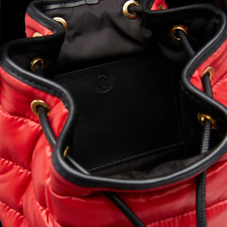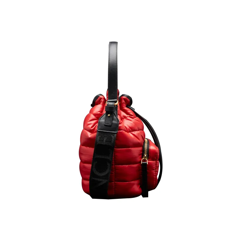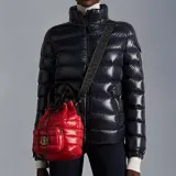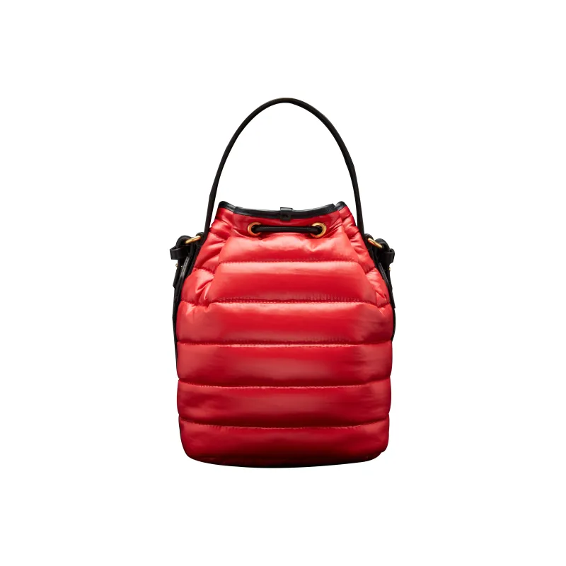 Moncler Лакированная поверхность Нейлон с кожаными вставками Детали Ведрообразная сумка Сумка через плечо Женская Красная