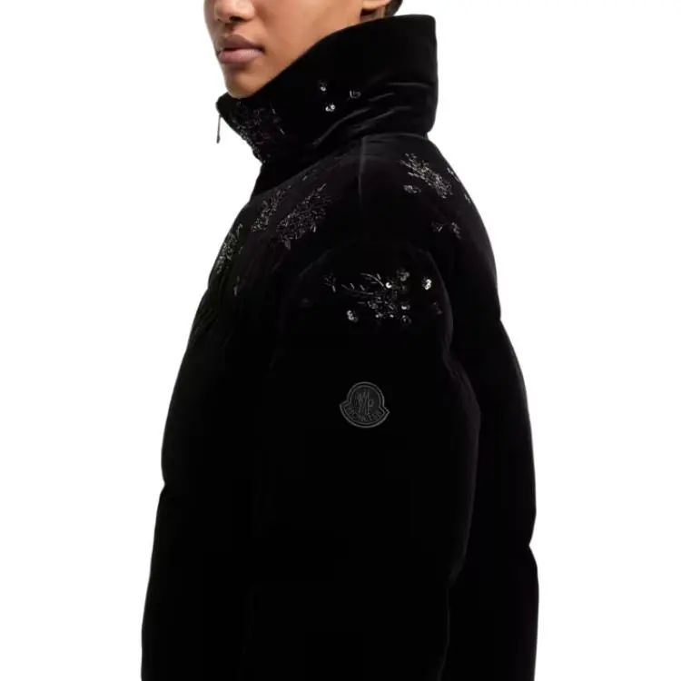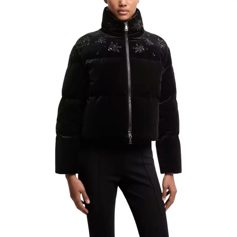Moncler Короткий Пуховик из Ткани с Рисунком и Блёстками Nelles Женские