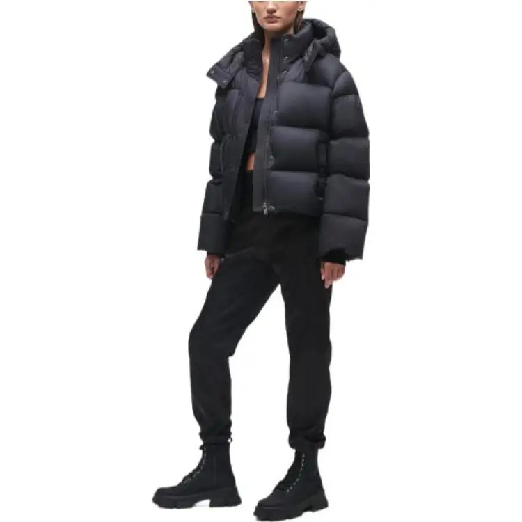 Moose Knuckles FW22 Однотонный С капюшоном Свободный крой Утолщенный Короткий Пуховик Женский Черный