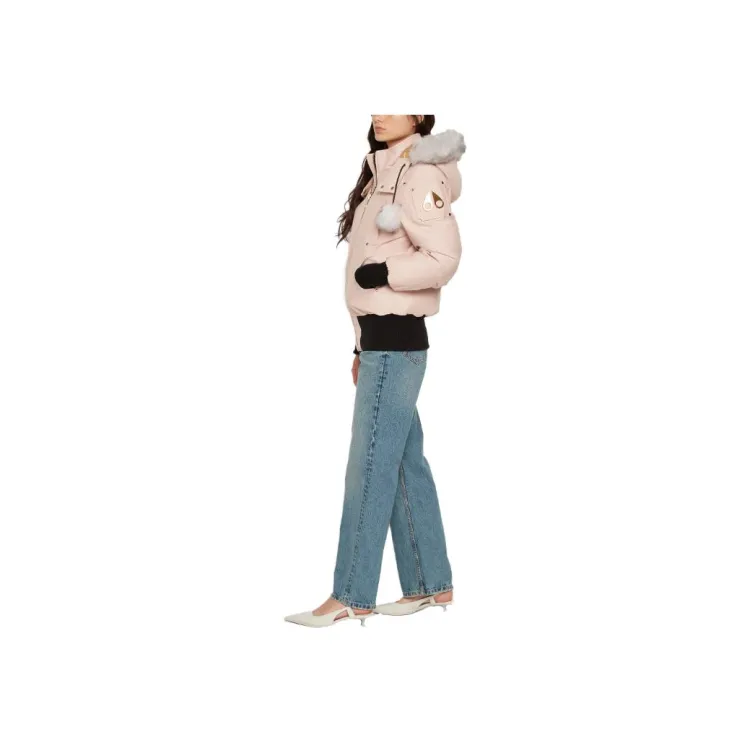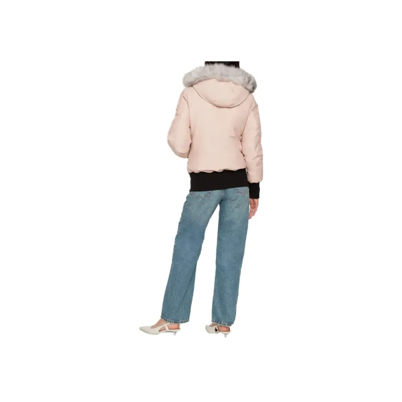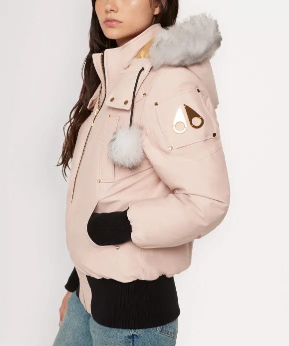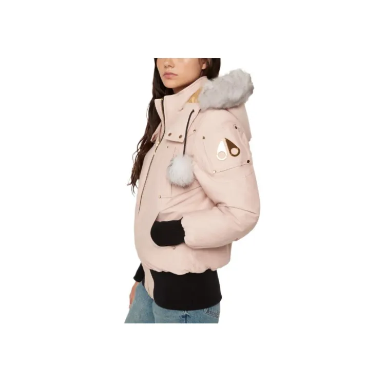 Moose Knuckles Gold Debbie Bomber Shearling Down Jacket Coat Women's Pink