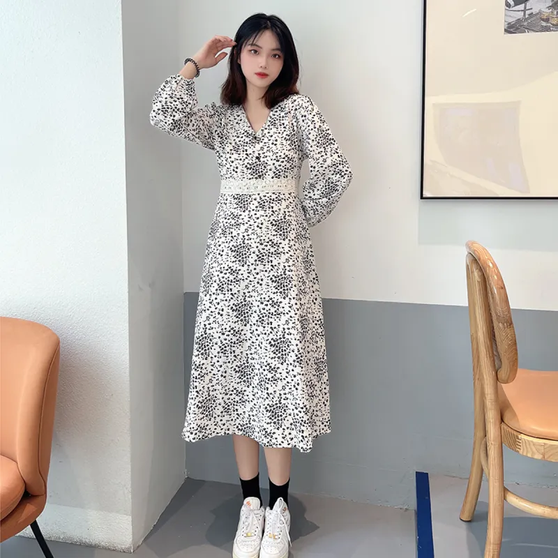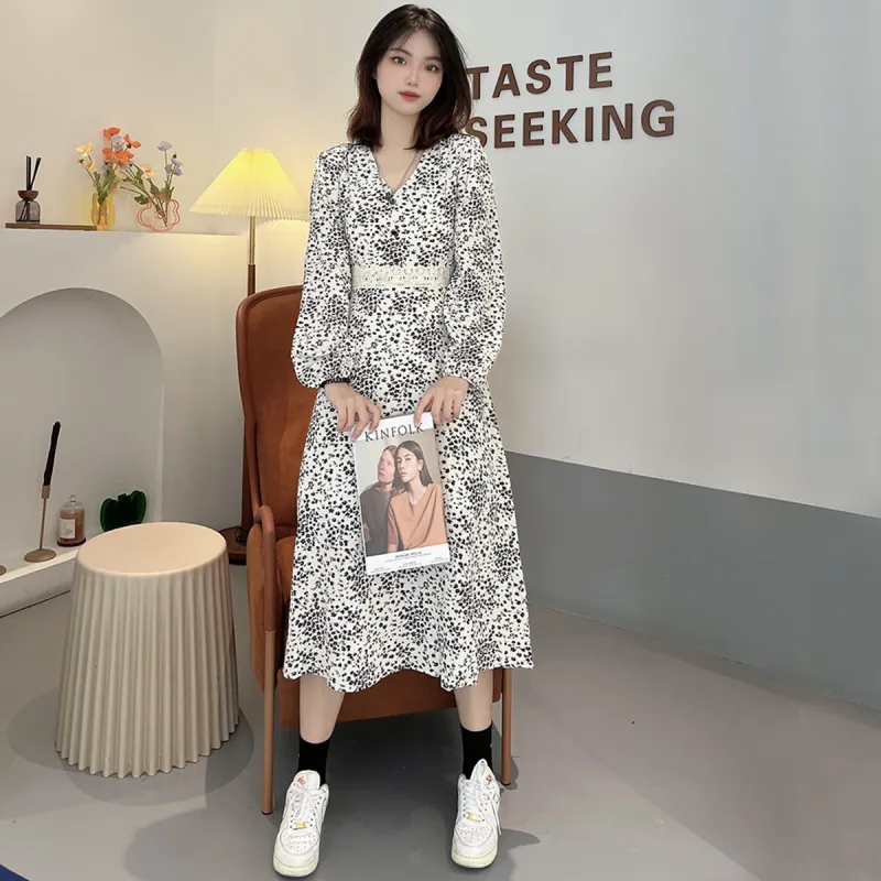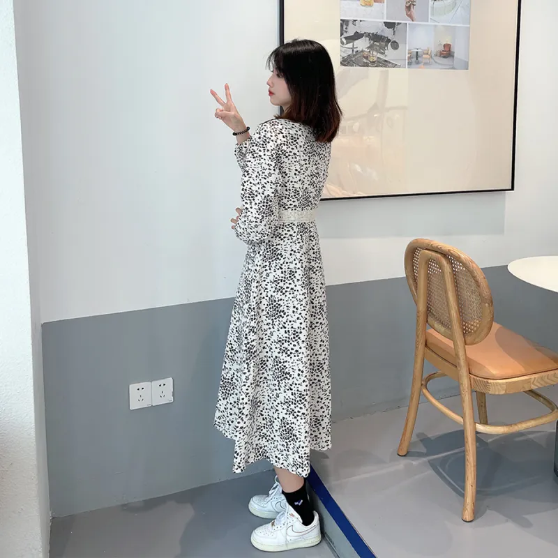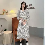 MOPB Цветочный Женские Длинные Платья с Рукавами