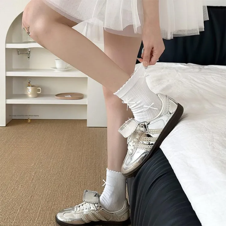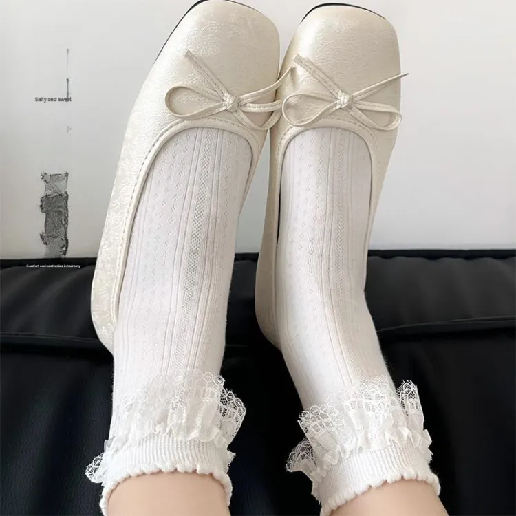 Сетчатые носки, Кружевная отделка, Бант, Носки без упаковки